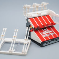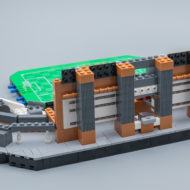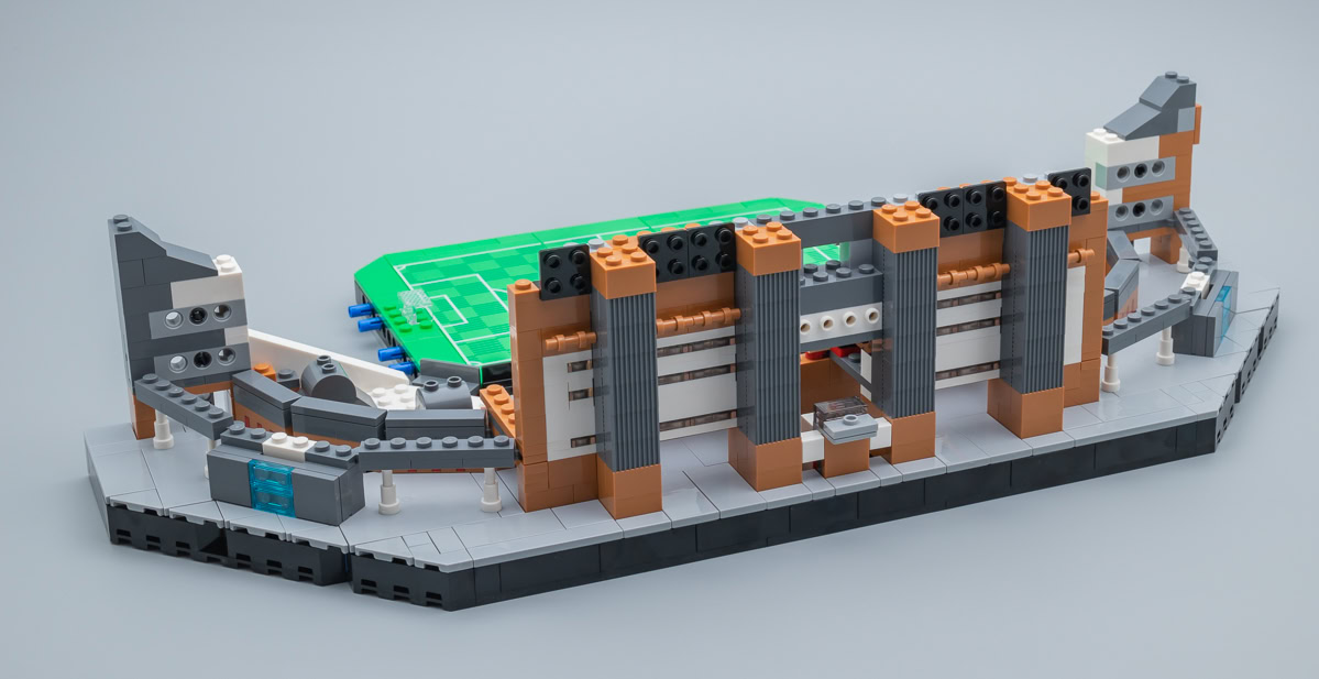 Les façades extérieures du stade sont très fidèles à la construction de référence et les différentes structures qui maintiennent les toits des tribunes, bien que simplifiées sur la version LEGO, font vraiment illusion. Les plus perfectionnistes prendront le temps d'orienter les différents éléments de la structure métallique qui recouvre la toiture pour dissimuler les points d'injection et les trous visibles sur le côté des différents clips.