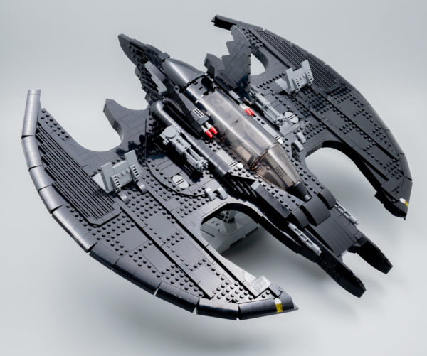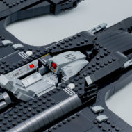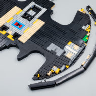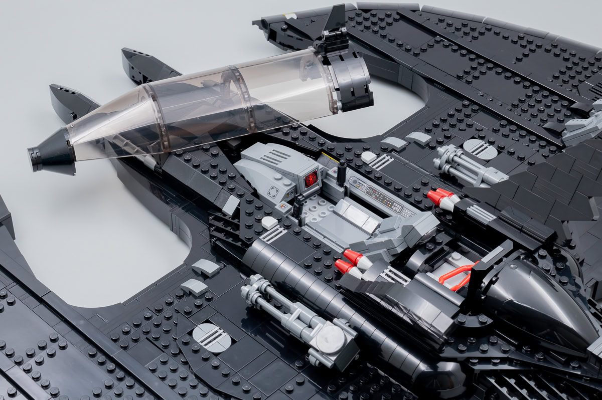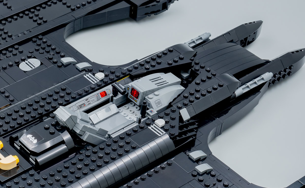 Le designer a d'ailleurs pris quelques libertés au niveau des proportions de l'engin qui est beaucoup plus ramassé dans le film. L'objectif avoué était ici de coller à l'échelle de la Batmobile du set 76139 1989 Batmobile ce qui nous donne un cockpit beaucoup plus long que sur la version utilisée à l'écran. On ne s'en plaindra pas, le Batwing du film a à un côté vraiment Chibi dont on se passera volontiers.