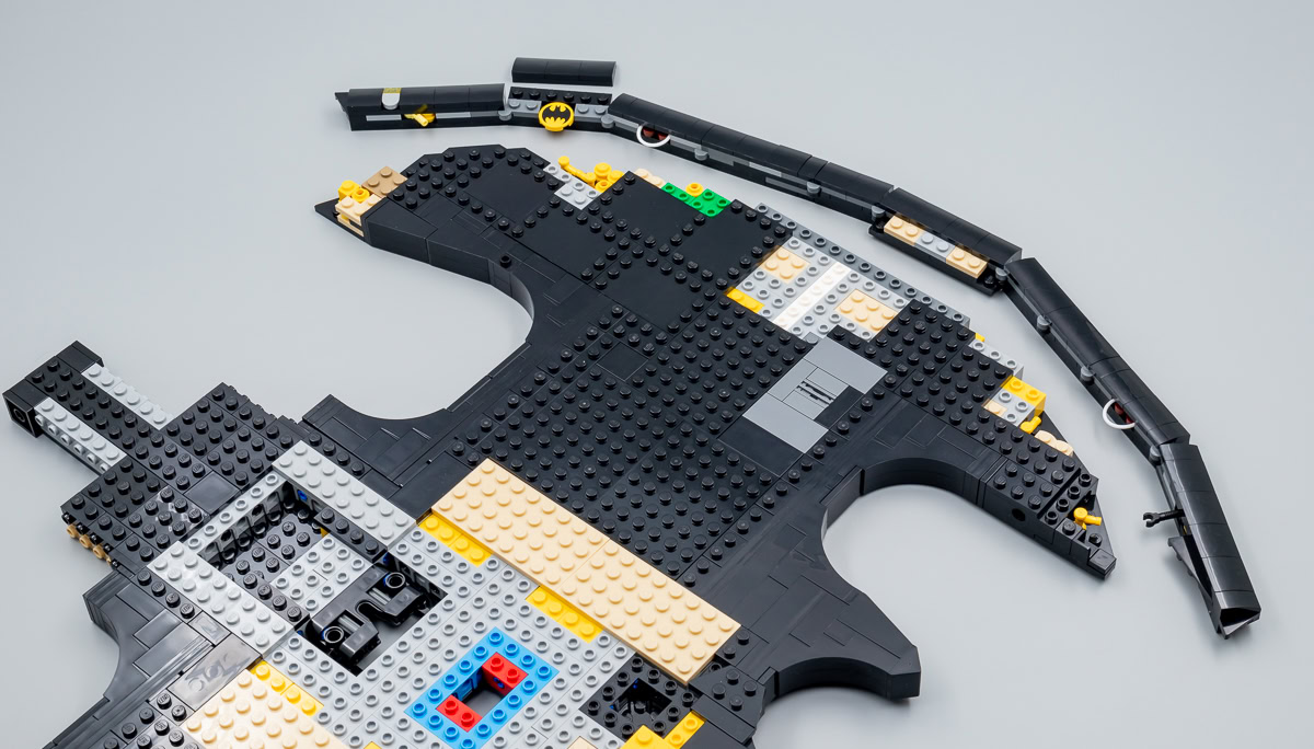 Lors de l'annonce officielle du produit, LEGO indiquait que ce Batwing peut être accroché à un mur via la fixation intégrée, et comme on pouvait s'en douter le fabricant réutilise ici la nouvelle pièce déjà fournie avec les cadres de la gamme LEGO Art. Il faudra cependant faire très attention si vous souhaitez plaquer le Batwing contre le mur du salon, l'engin pèse près de 2.5 kg.
