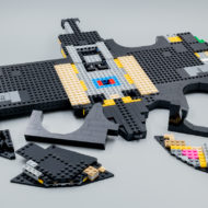 On retiendra que l'intérieur de ce Batwing est raccord avec celui de la Batmobile du set 76139 1989 Batmobile, on y retrouve un assortiment de pièces dans les mêmes coloris jusque dans la présence de la frame Technic en Dark Azure qui indique la position du trou dans lequel vient s'insérer le support de présentation. Joli clin d'œil.