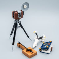 Pour accompagner les deux souris, LEGO fournit quelques accessoires à assembler dans la boite : Un appareil photo vintage en Reddish Brown sur son trépied avec de nouveaux coins arrondis, une Cigar Box Guitar à une corde vue dans les mains de Mickey sur de nombreuses illustrations, un bouquet de fleurs pour Minnie et un livre dont la couverture et l'intérieur sont habillés de quatre stickers.