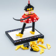 L'intérieur du torse est un empilement de pièces colorées sur lequel on fixe quelques sous-assemblages qui se chargent d'apporter un peu de rondeur aux deux modèles. Si le short de Mickey et la jupe de Minnie sont assez réussis, le haut du torse l'est à mon avis beaucoup moins avec des angles un peu trop prononcés qui produisent un effet "poire".