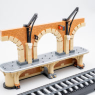 Les bogies de chacun des modules du train sont dans l'ensemble esthétiquement très réussis même si les plus férus d'univers ferroviaire pourront les trouver un peu trop simplifiés. Ils font cependant illusion lorsque la maquette est observée d'une certaine distance et c'est bien là l'essentiel. Je pense d'ailleurs que certains fans risquent d'être un peu déçus par la simplicité générale de la construction en s'attendant à des techniques beaucoup plus élaborées. On empile beaucoup de surfaces lisses ou de gros sous-ensembles et même si certaines étapes sont à mon avis très créatives, je pourrai comprendre la déception de certains. L'assemblage en inversé des arches du quai est plutôt bien pensé, je laisse le plaisir de la découverte de cette section à ceux qui achèteront le set.