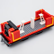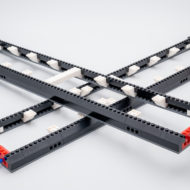 L'assemblage des deux sections de rails qu'il faudra réunir pour obtenir le présentoir de près d'1m20 de long est l'étape la plus répétitive du set. Le tout est construit en quelques minutes et on prend alors vraiment conscience qu'il va falloir trouver beaucoup de place pour exposer cette maquette. Cette longue section de rails peut être séparée en deux parties pour faciliter le transport et le rangement de la maquette mais il sera difficile d'exposer le train sur les deux parties séparées du présentoir : deux morceaux de rails chevauchent la jonction.