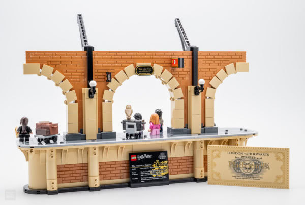 Le set inclut également un ticket grandeur nature en plus des deux exemplaires à l'échelle minifig, la plaque est joliment tampographiée et elle devait initialement être fournie dans le set LEGO Harry Potter 76391 Hogwarts Icons Collector's Edition. Vous lui trouverez facilement une place à côté d'Hedwige et des différents accessoires empilés sur le tas de livres du set, il n'y a de toute façon rien de prévu pour la placer à côté du train de cette nouvelle boite.