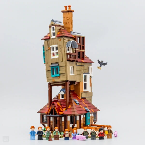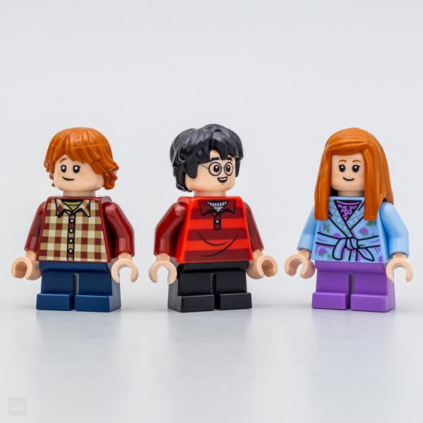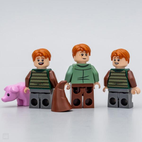 Cette grosse boite permet d'obtenir 10 minifigs : Harry Potter, Ron Weasley, Ginny Weasley, Fred Weasley, George Weasley, Molly Weasley, Arthur Weasley, Percy Weasley, Bill Weasley et Charlie Weasley, ce dernier n'étant même pas présent dans les films de la saga à part une furtive apparition sur une photo souvenir de vacances dans Harry Potter et le Prisonnier d'Azkaban.