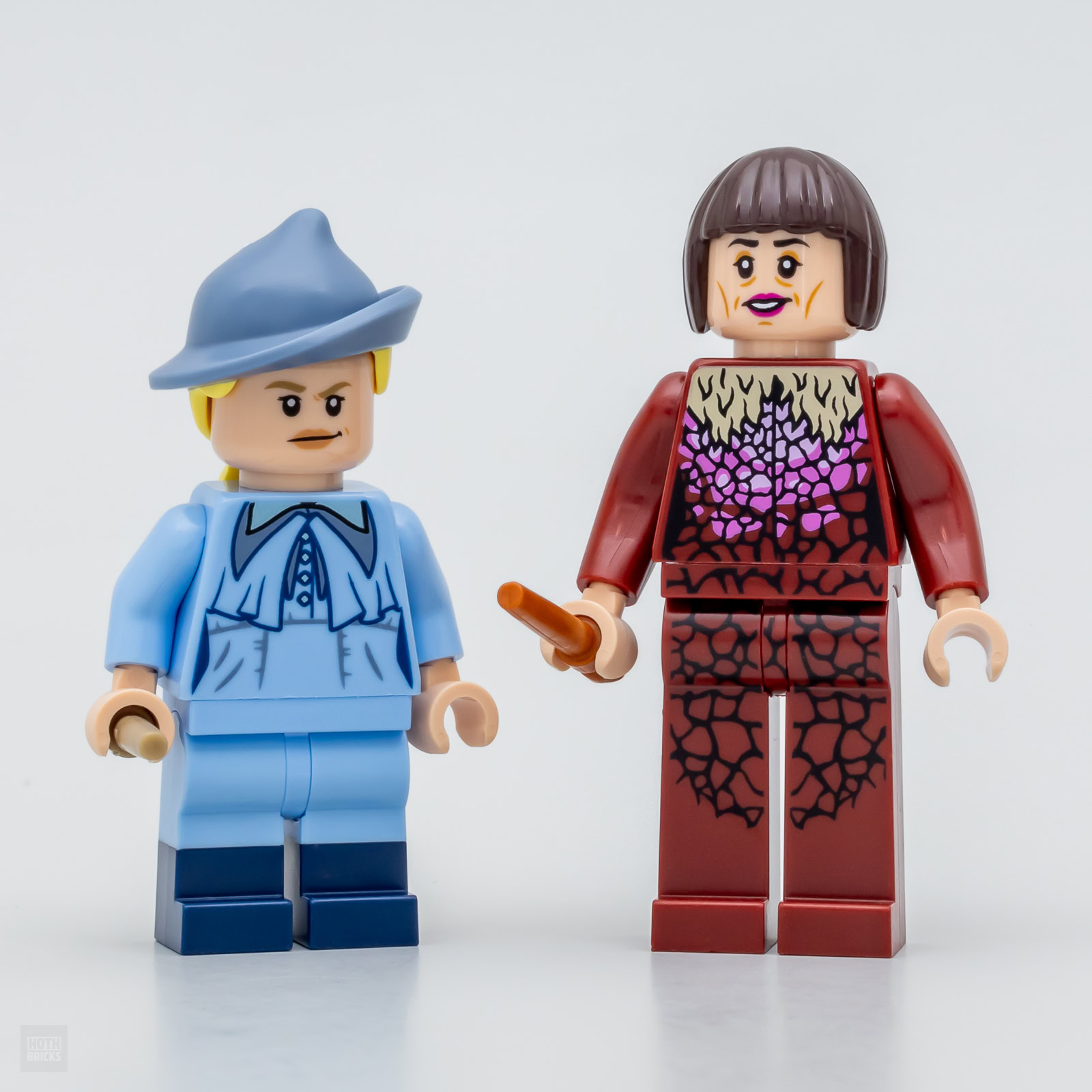 Les figurines de Viktor Krum et Igor Karkaroff sont correctement exécutées et les tenues sont conformes à celles vues à l'écran, il manque juste les ouchankas portées par les deux personnages lors de leur arrivée dans la Grande Salle. On fera sans. Les tampographies sont réussies et la teinte de l'accessoire de Krum est raccord avec la couleur de la tampographie qui circule le long des bords du manteau porté par le personnage.