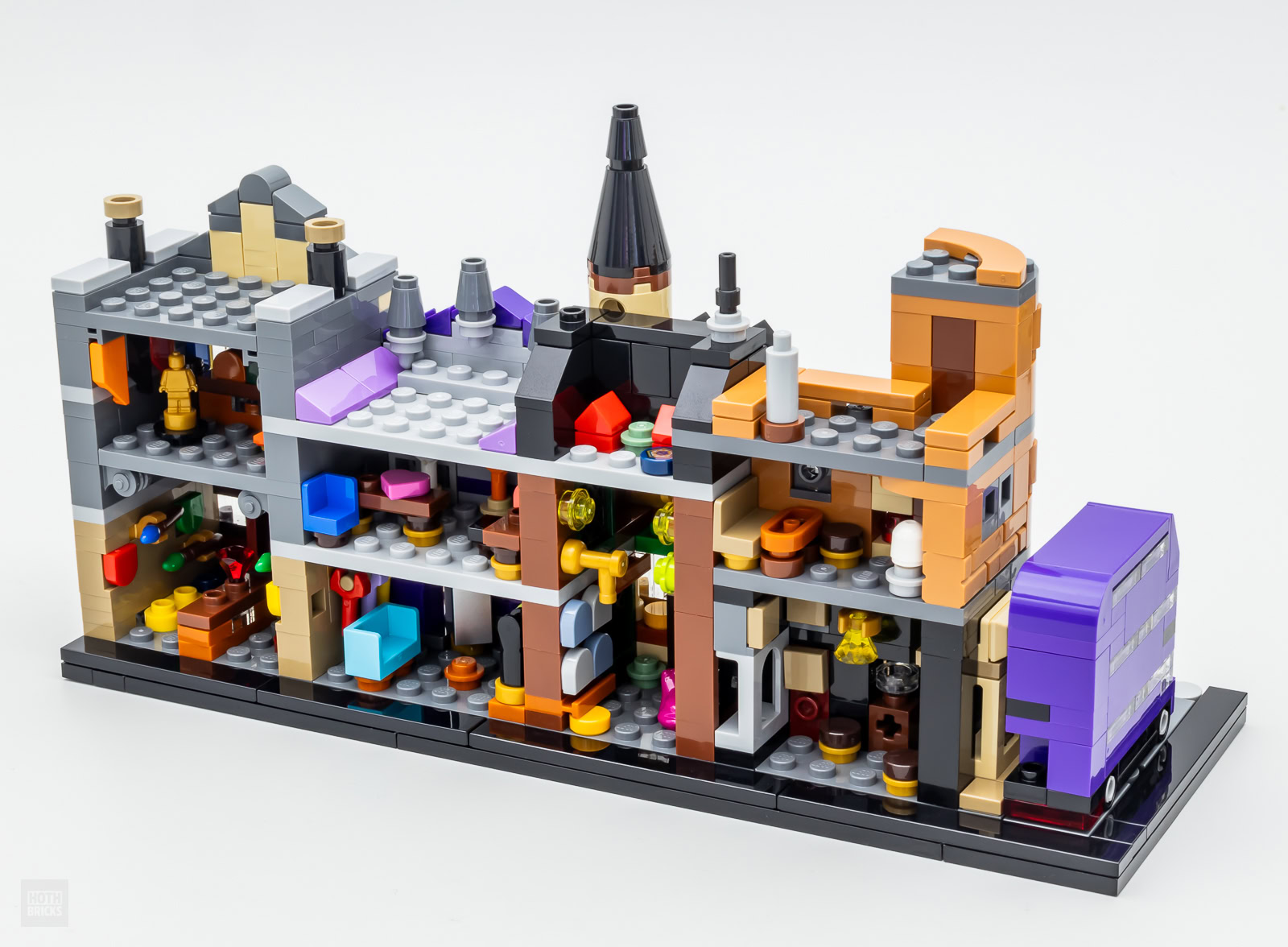 Si vous avez déjà craqué pour le set 76419 Hogwarts Castle & Grounds (169,99 €) parce que vous vouliez disposer d'une version définitive, compacte et tout de même suffisamment détaillée de Poudlard sans pour autant jouer avec, ce nouveau set dans la même veine est fait pour vous. C'est un bon résumé du sujet traité avec des boutiques facilement identifiables et une mise en scène convaincante si vous présentez les différents modules dans leur configuration la plus réaliste.