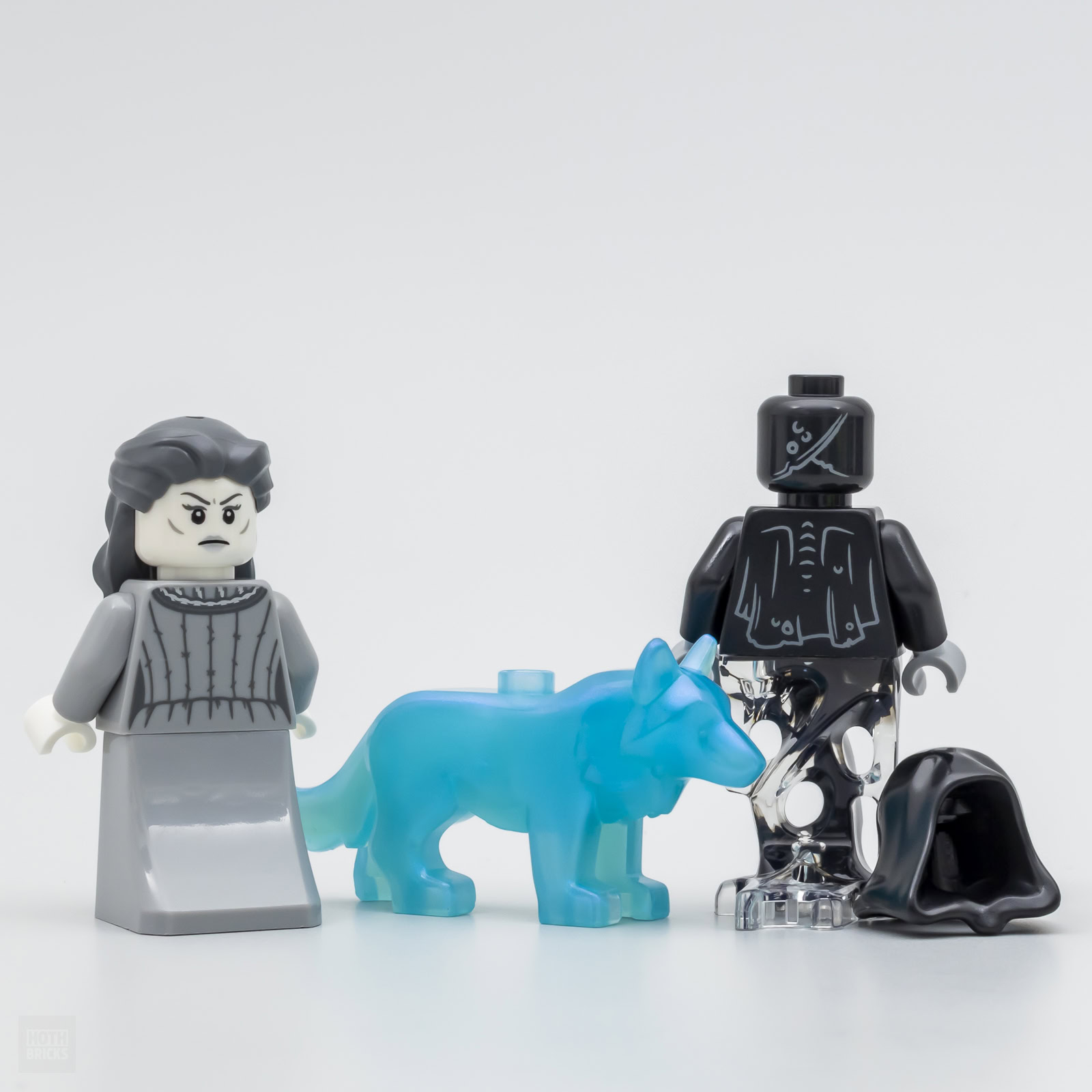 La figurine de La Dame Grise est joliment exécutée avec une apparence plus aboutie que la version livrée en 2023 dans le set 76413 Hogwarts : Room of Requirement et le Patronus spécial 25ème anniversaire de la gamme fourni est toujours aussi opaque.