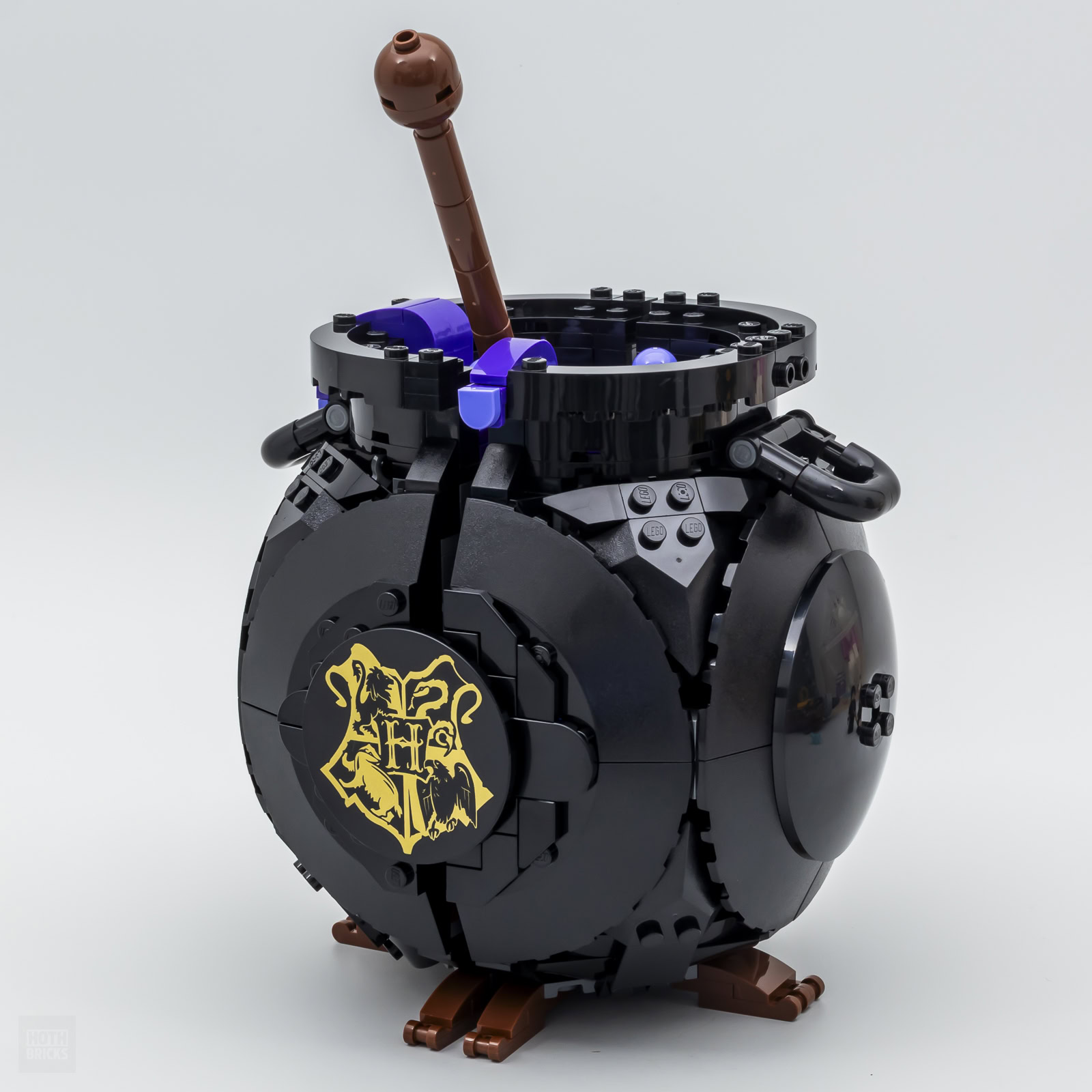L'idée de départ est bonne, aucun doute là-dessus, avec une réalisation qui rend ce chaudron très crédible. L'objet est plutôt rond, on y retrouve tous les attributs attendus comme les poignées, le manche de la cuillère et le bouillonnement des ingrédients en surface. Les pieds savent se faite discrets et élégants et le blason de Poudlard tampographié ajoute un peu de finesse à l'ensemble.