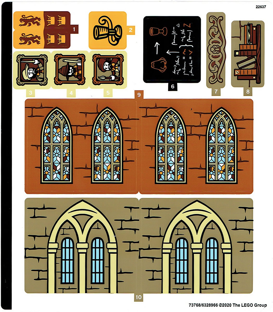 À l'intérieur, c'est un peu la foire aux stickers avec de très gros autocollants à mettre en place dans les différents emplacements prévus. Ces stickers contribuent largement à l'ambiance de chaque salle de classe et il sera difficile de s'en passer, le livre ouvert faisant office de décor. À décharge pour LEGO, ces stickers sont vraiment bien réalisés, et on saluera le travail du graphiste chargé du dossier.