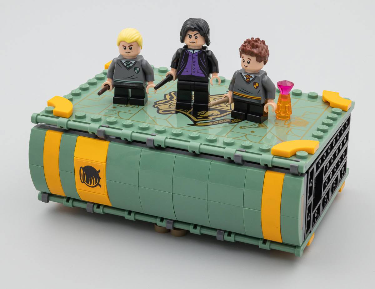 Dans le set 76383 Hogwarts Moment : Potions Class, Drago Malefoy et Seamus Finnigan eux aussi équipés de torses inédits disponibles pour l'instant uniquement dans cette mini-collection, et le directeur de Serpentard Severus Rogue qui aurait sans doute gagné à disposer de jambes tampographiées.