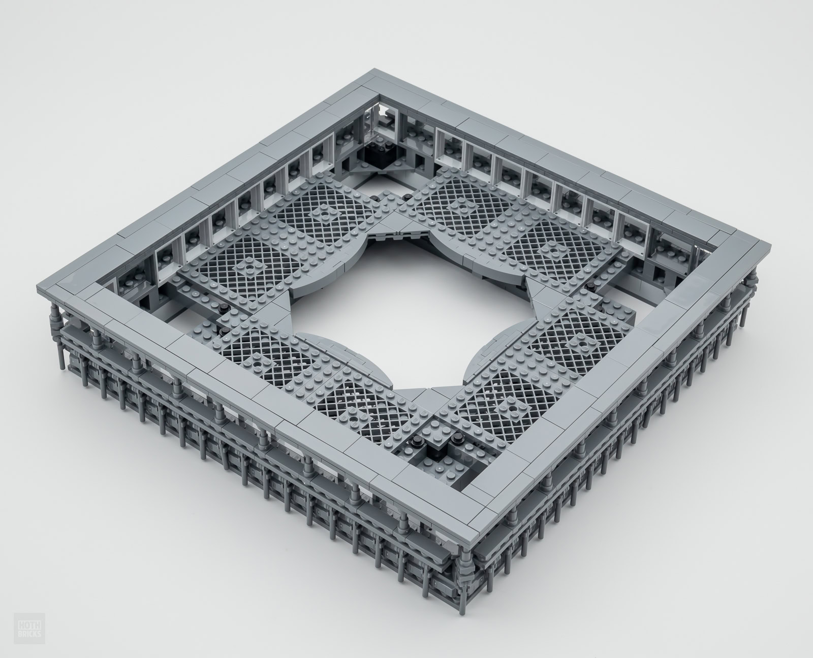 Le set explore par ailleurs les limites de la lisibilité lorsqu'il s'agit des instructions de montage réparties en trois livrets, certains angles sont difficilement déchiffrables et il faudra rester vigilant malgré les inévitables nombreuses séquences franchement répétitives imposées par le sujet traité. Ceux qui auront pris le temps de zoomer sur les visuels officiels auront compris que certaines sections sont un peu fragiles avec des croisillons qui ne tiennent que sur un seul point de fixation et qui ont tendance à se déplacer facilement lors des manipulations. Certains auront donc sans doute l'impression que les sous-ensembles connectés d'un seul côté de la structure et qui se terminent dans le vide de l'autres gâchent un peu le rendu global surtout lorsque cette tour est observée de près.