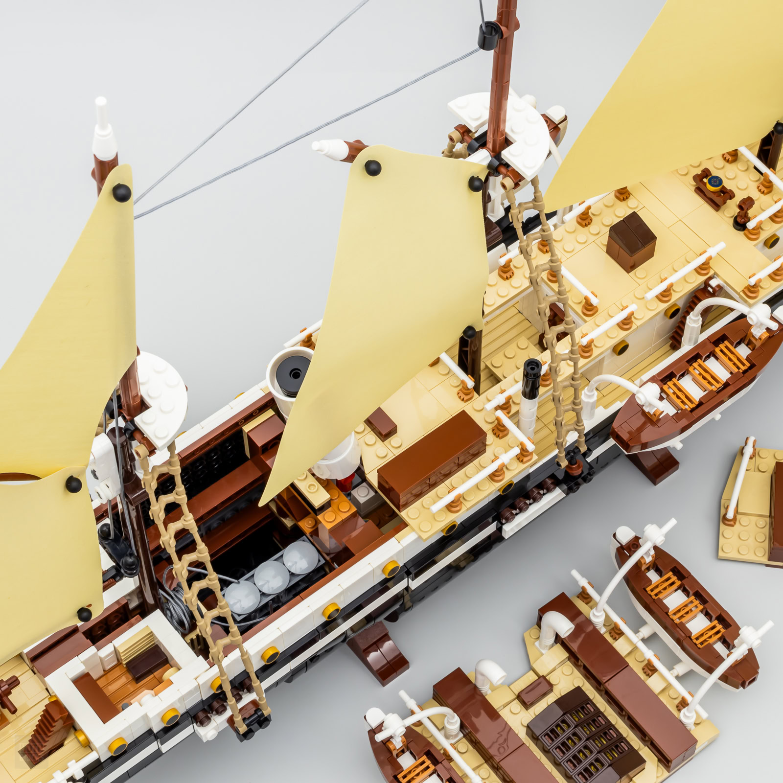 LEGO aurait pu choisir de mettre en scène ce navire sur un socle de glace, histoire de le mettre dans son contexte historique avant qu'il ne coule, mais le fabricant a préféré aller sur le terrain du maquettisme classique, sans doute pour s'assurer que ce set ne séduira pas que les fans de LEGO.
