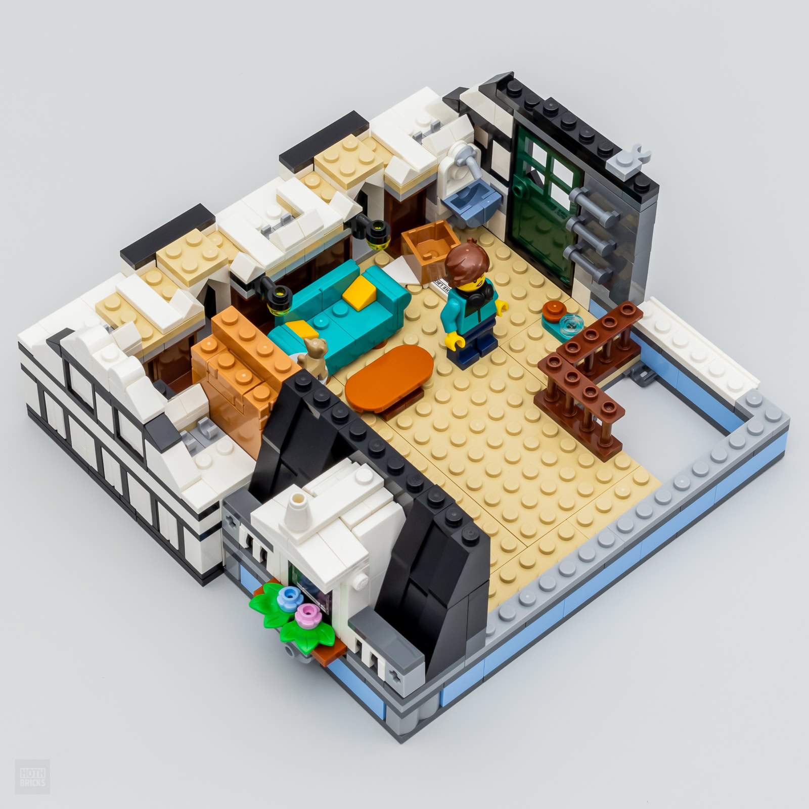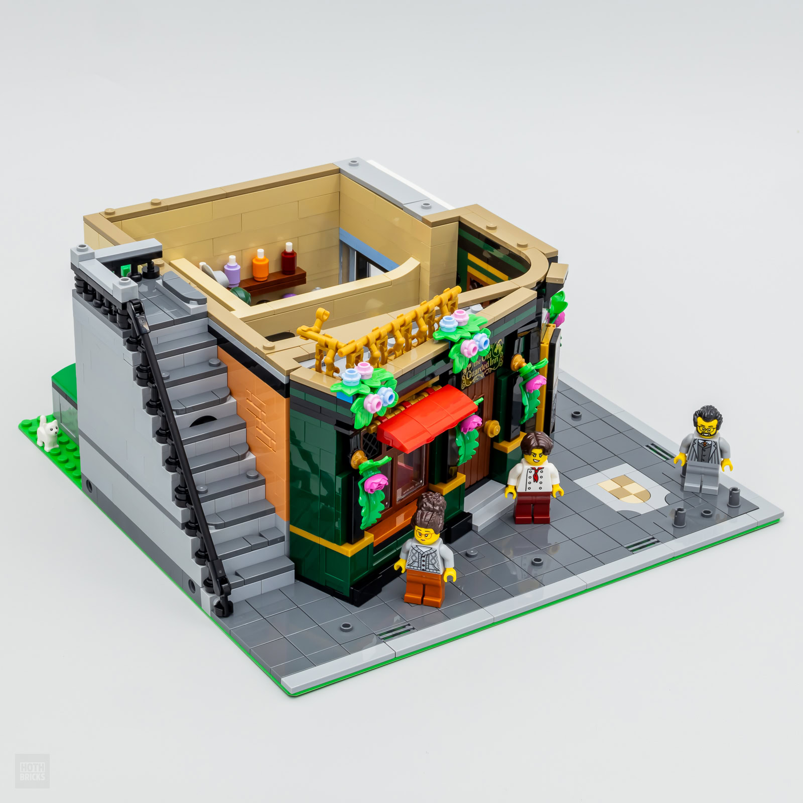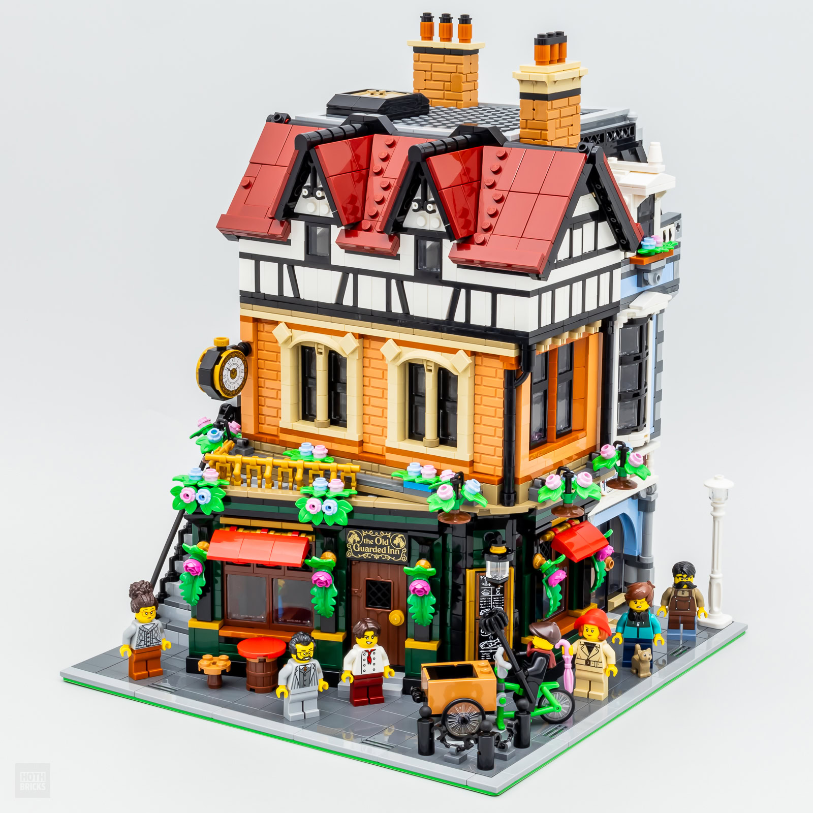 La variété des textures et des coloris utilisés pour les murs de la construction contribue à offrir une expérience d'assemblage vraiment satisfaisante. Ce Modular n'est pas sur une thématique unique même si on peut lui accorder le style "Tudor" pour le bâtiment principal et on passe avec plaisir d'un univers à l'autre au fil des étapes du livret. À l'arrivée on obtient deux constructions collées l'une à l'autre avec leurs particularités architecturales et leur identité.