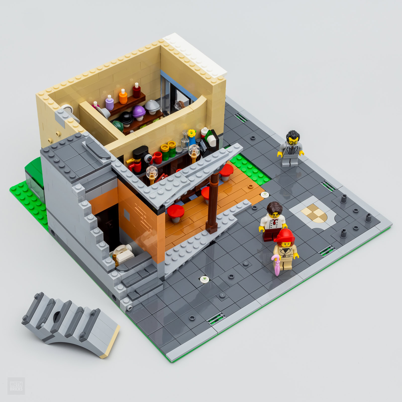 On pourrait rajouter le bâtiment du set 10297 Boutique Hotel (2022) et l'ensemble aurait à mon avis franchement fière allure en l'état. On peut comprendre que LEGO privilégie une intégration possible avec les produits encore disponibles à son catalogue sans se soucier de la cohérence entre les produits les plus récents et les références les plus anciennes de la gamme. Ce sera donc à chacun de trouver la meilleure combinaison possible entre tous les Modulars dont il dispose, les possibilités sont nombreuses.