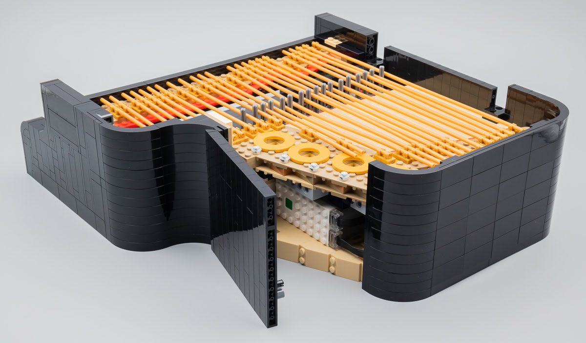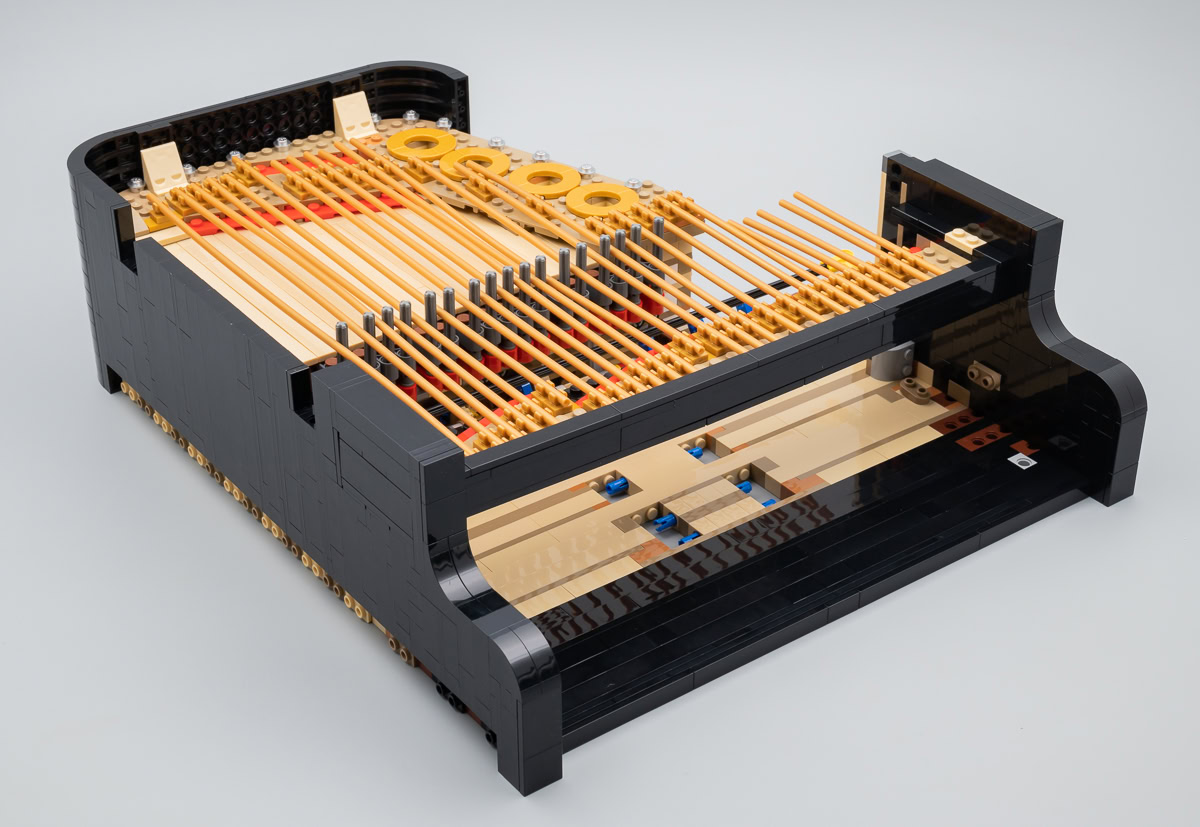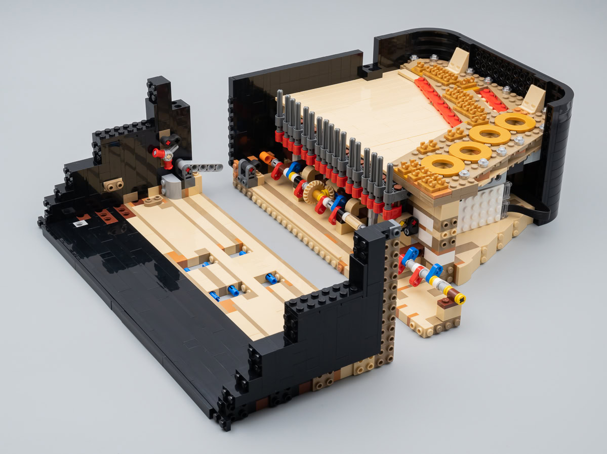On s'amusera quelques instants à regarder les marteaux taper sur les tiges dorées qui incarnent les cordes du piano et je dois reconnaître que le mécanisme interne fait son petit effet, même sans faire appel à l'application Powered Up. L'ensemble reste un jouet à base de briques LEGO et il n'est pas rare de voir une touche se bloquer. Rien de grave, mais ce n'est pas une maquette ajustée au millimètre près.