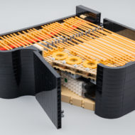 Avec le dernier des 21 sachets du set, on assemble aussi un joli petit tabouret dont l'assise est réglable en hauteur via un mécanisme utilisant une vis sans fin, histoire d'avoir un produit d'exposition abouti. La touche finale est une partition tampographiée d'un morceau composé par Donny Chen, le professeur de piano qui avait proposé le projet LEGO dont s'inspire cette boite. Elle prend place sur le support prévu à cet effet qui accueillera également l'indispensable smartphone servant à profiter des différentes fonctions intégrées au produit.