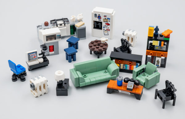 Le mobilier à assembler dans cette boite est d'ailleurs très réussi avec de jolies techniques qui devraient plaire aux amateurs de Modulars et des éléments tous vraiment fidèles aux accessoires qui peuplent le studio. Je vous fais grâce des innombrables références à différents épisodes de la série, je ne vais pas faire semblant de me souvenir de chacun des épisodes que j'ai pu voir dans les années 90 et que je n'ai jamais revu depuis. Je me souviens tout de même de la climatisation Commando 8 installée par Kramer sur la fenêtre du bureau et du "Festivus Pole" de Frank Costanza, deux éléments repris dans le set.