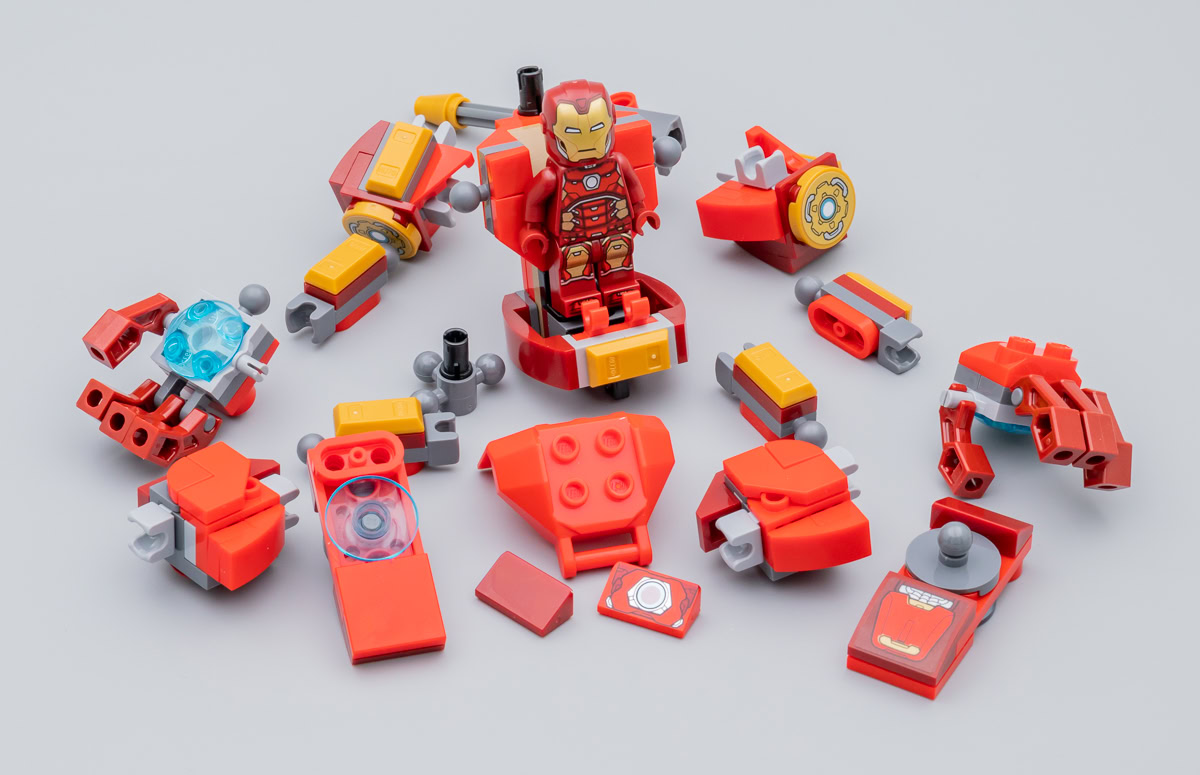 La pièce qui sert de torse aux différents mechs n'est pas inédite, c'est celle qui était déjà utilisée en rouge dans le set 70363 Battle Suit Macy commercialisé en 2017 dans la gamme LEGO Nexo Knights. La version en Pearl Gold utilisée ici pour le mech de Thanos est celle qui était livrée en 2018 dans le set Nexo Knights 72004 Tech Wizard Showdown. Une version Dark Red aurait à mon avis été la bienvenue pour le mech d'Iron Man.