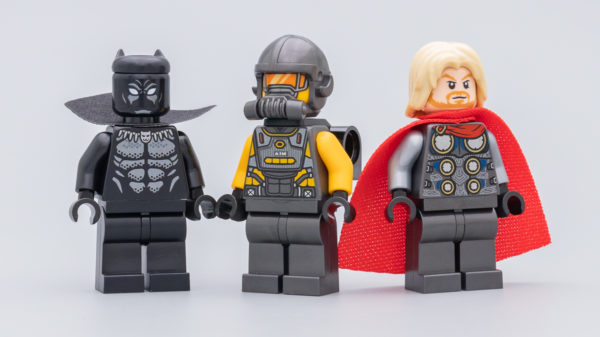 Le torse de Thor est une belle représentation de la version numérique du personnage, à part pour les bras qui auraient dû être de couleur chair. La minifig de Black Panther est d'une relative sobriété par rapport aux versions précédentes du personnage mais le résultat me semble très correct.
