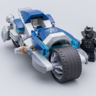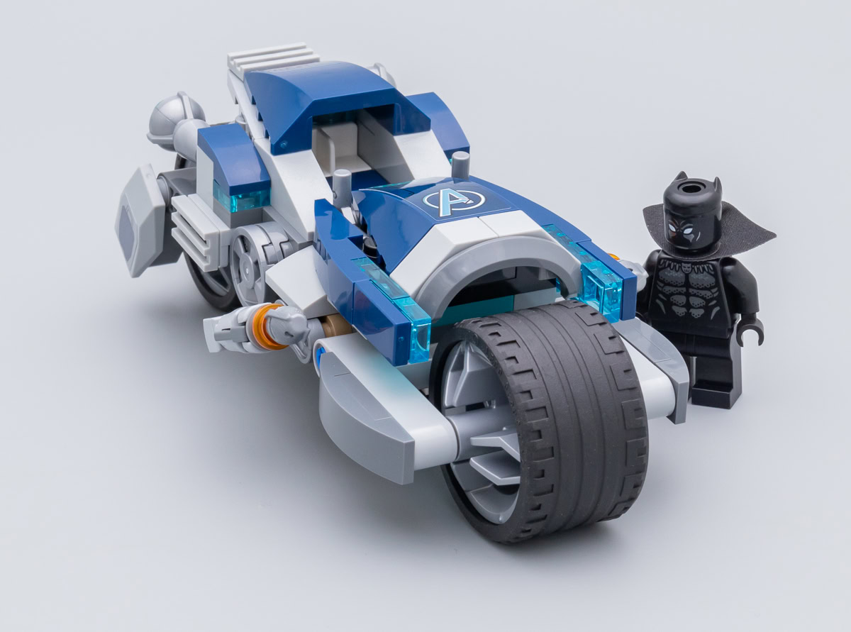 Dans cette boite, l'engin à construire est la moto de Black Panther. Pourquoi pas, le design de l'engin est original et on peut imaginer que les usines du Wakanda sont capables de produire de tels engins au look futuriste. Malheureusement, la chose est surdimensionnée et n'est pas du tout à l'échelle de la minifig. Il suffit d'installer Black Panther aux commandes de l'engin pour comprendre que la figurine ne peut même pas saisir les deux poignées de commandes. Et c'est sans compter sur la position de pilotage totalement loufoque créée ici qui rappellera des souvenirs à ceux qui possèdent déjà les sets 76126 Avengers Ultimate Quinjet ou 76113 Spider-Man Bike Rescue...