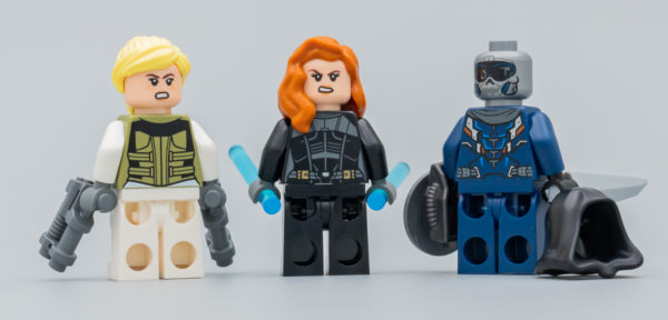 Du côté des minifigs fournies, c'est carton plein : Elles sont toutes les trois inédites et jusqu'à preuve du contraire exclusives à cette boite même si Yelena Belova a les traits d'Hermione Granger ou de Pepper Pots et que Natasha Romanoff a son visage habituel qui est aussi celui de Rachel Green, Padme Amidala, Jyn Erso ou encore Vicki Vale.