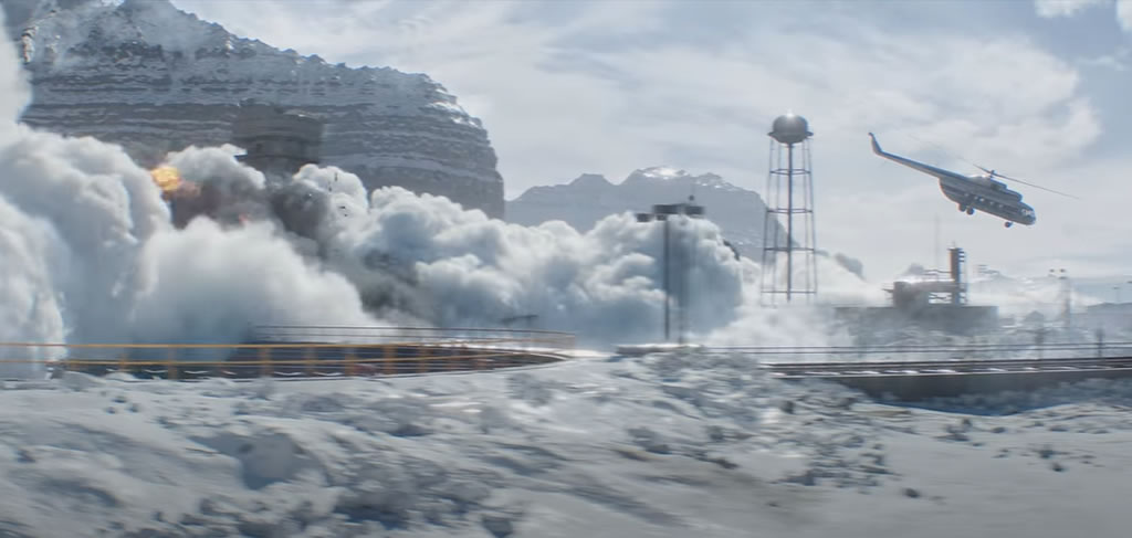 Je pense que LEGO a une fois de plus tout mélangé et que l'emballage et le contenu de cette boite font vaguement référence à une des scènes vues dans le trailer qui a du être pitchée très sommairement aux designers : "...un hélicoptère, de la neige, les deux héroïnes, le méchant, et ce que vous voulez autour pour amuser les enfants...".