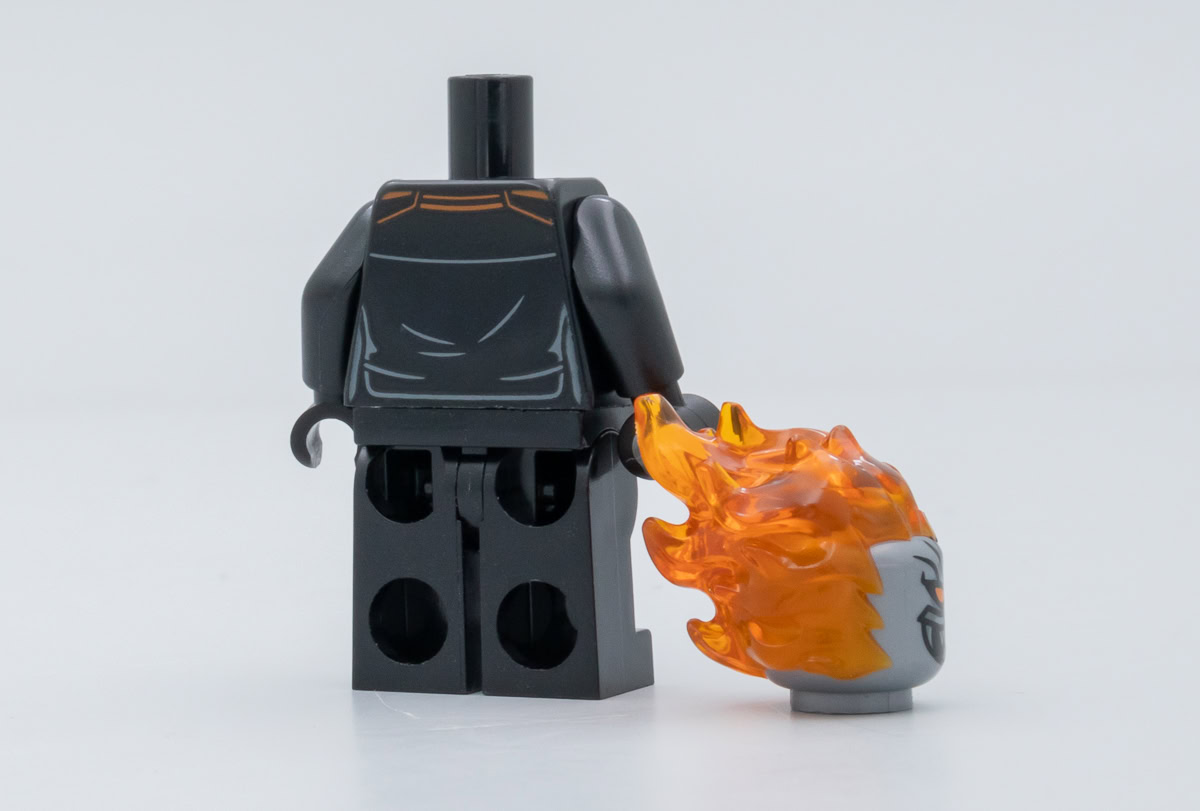 Dans tous les cas, je préfère largement cette version de Ghost Rider à celle du set 76058 Spider-Man : Ghost Rider Team-up qui se contentait d'adapter une tête blanche comme on en trouve sur les squelettes LEGO à l'aide d'une tampographie un peu grossière.