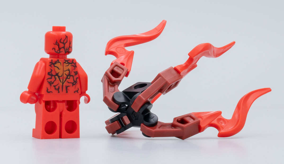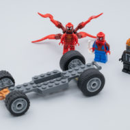 La minifig de Carnage est celle déjà vue dans le set 76113 Spider-Man Bike Rescue (2019) et 76163 Venom Crawler (2020), celle de Spider-Man avec ses bras à la tampographie vraiment couvrante est inédite mais elle est aussi livrée dans les deux autres sets commercialisés depuis le début de l'année (76172 Spider-Man and Sandman Showdown et 76174 Spider-Man's Monster Truck vs. Mysterio).