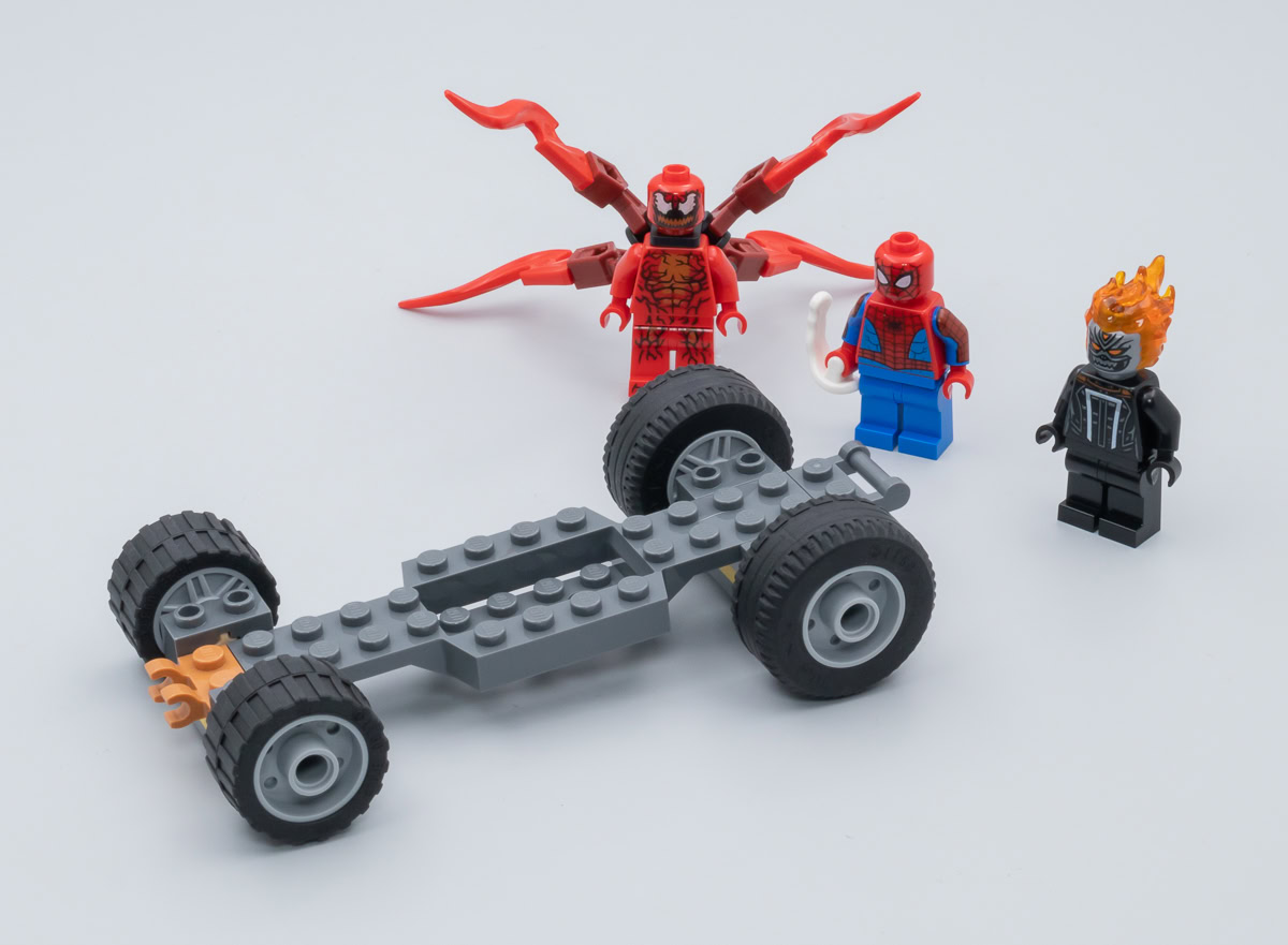L'assortiment de minifigs livré dans ce set ne paraitra pas forcément très cohérent à tout le monde et on peut se demander ce que viennent faire Spider-Man et Carnage dans cette boite. Je me serais volontiers contenté de quelques membres de gangs qui voudraient en découdre avec Robbie Reyes mais il fallait sans doute s'assurer que le set attire les plus jeunes et Spider-Man est généralement le candidat idéal.