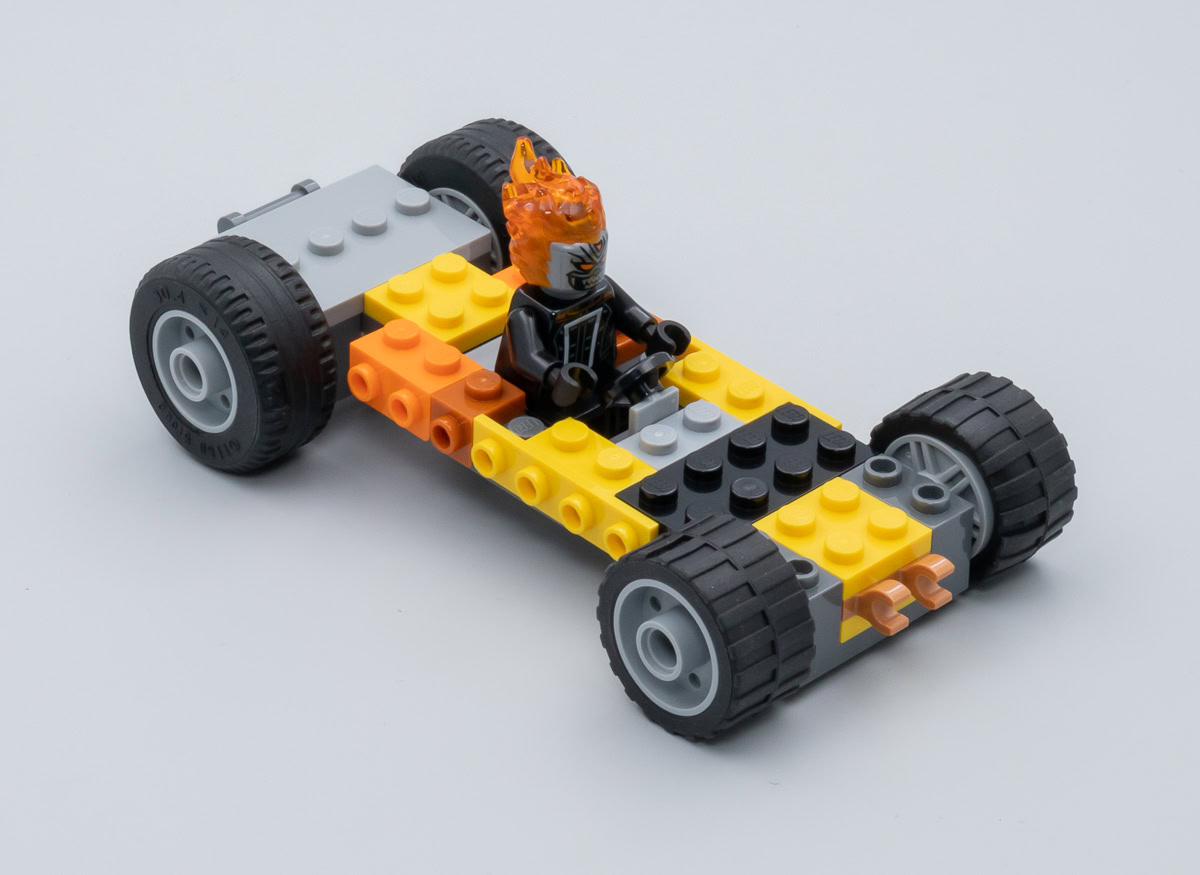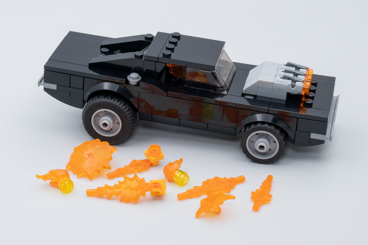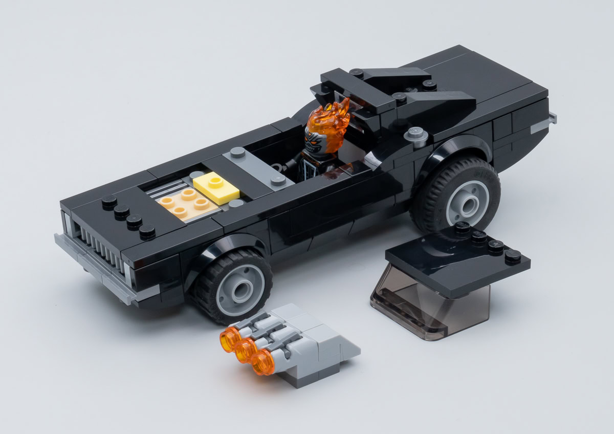 Dommage que LEGO ne nous fournisse pas une tête alternative pour le personnage, histoire de pouvoir choisir entre Robbie Reyes au volant de sa Dodge Charger "classique" et Ghost Rider au volant de sa voiture enflammée.