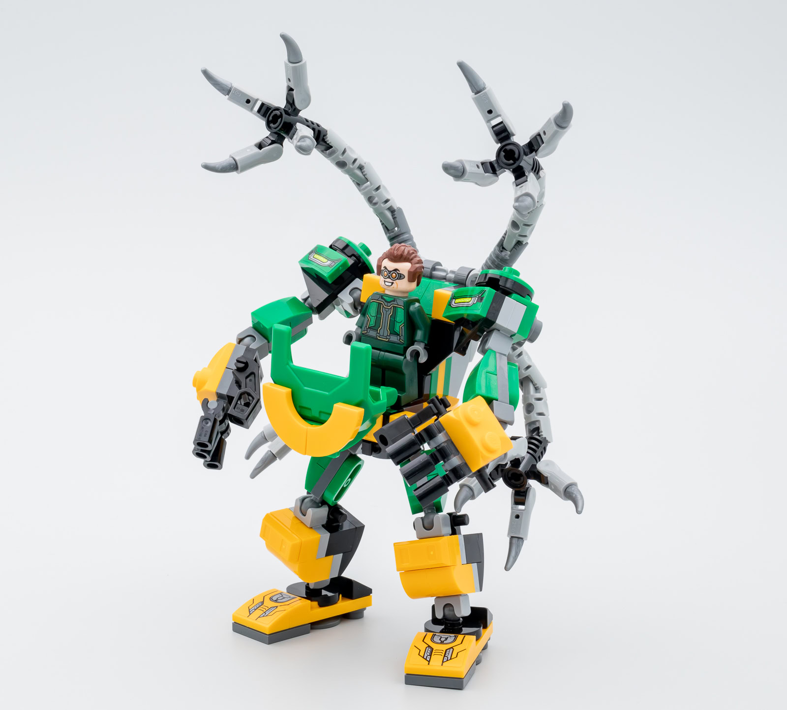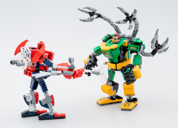 La star du set qui respecte les codes habituels de cette mini-gamme de mechs est le robot utilisé par Doctor Octopus, il est conçu sur le même modèle que les mechs vendus à l'unité avec des pieds un peu plus détaillés que ceux du Spider-mech et des bras à trois points d'articulations avec de vraies épaules. Les quatre bras mécaniques fixés sur le dos du robot sont très bien conçus, ils sont orientable et repositionnables, l'ensemble a vraiment de l'allure.