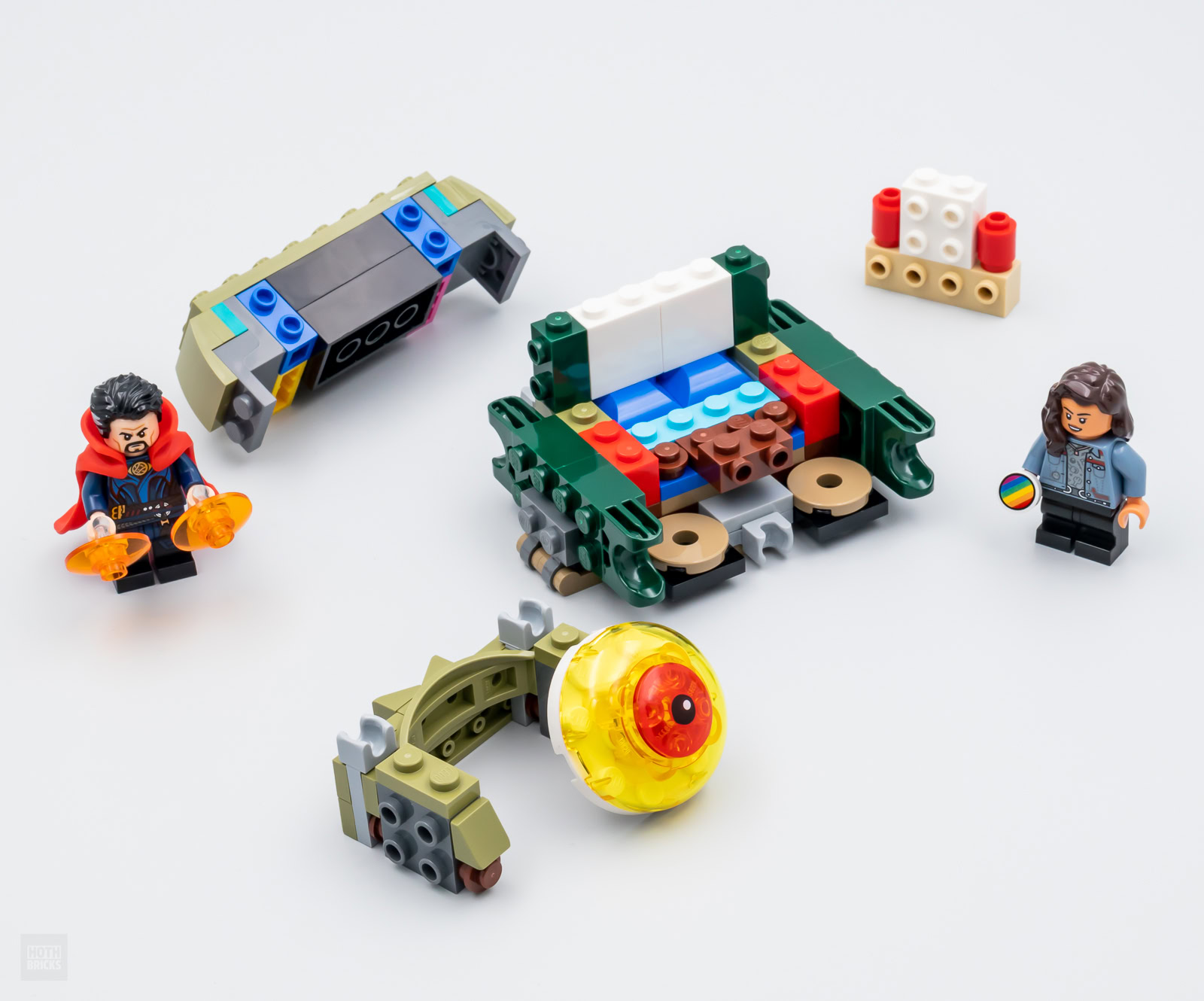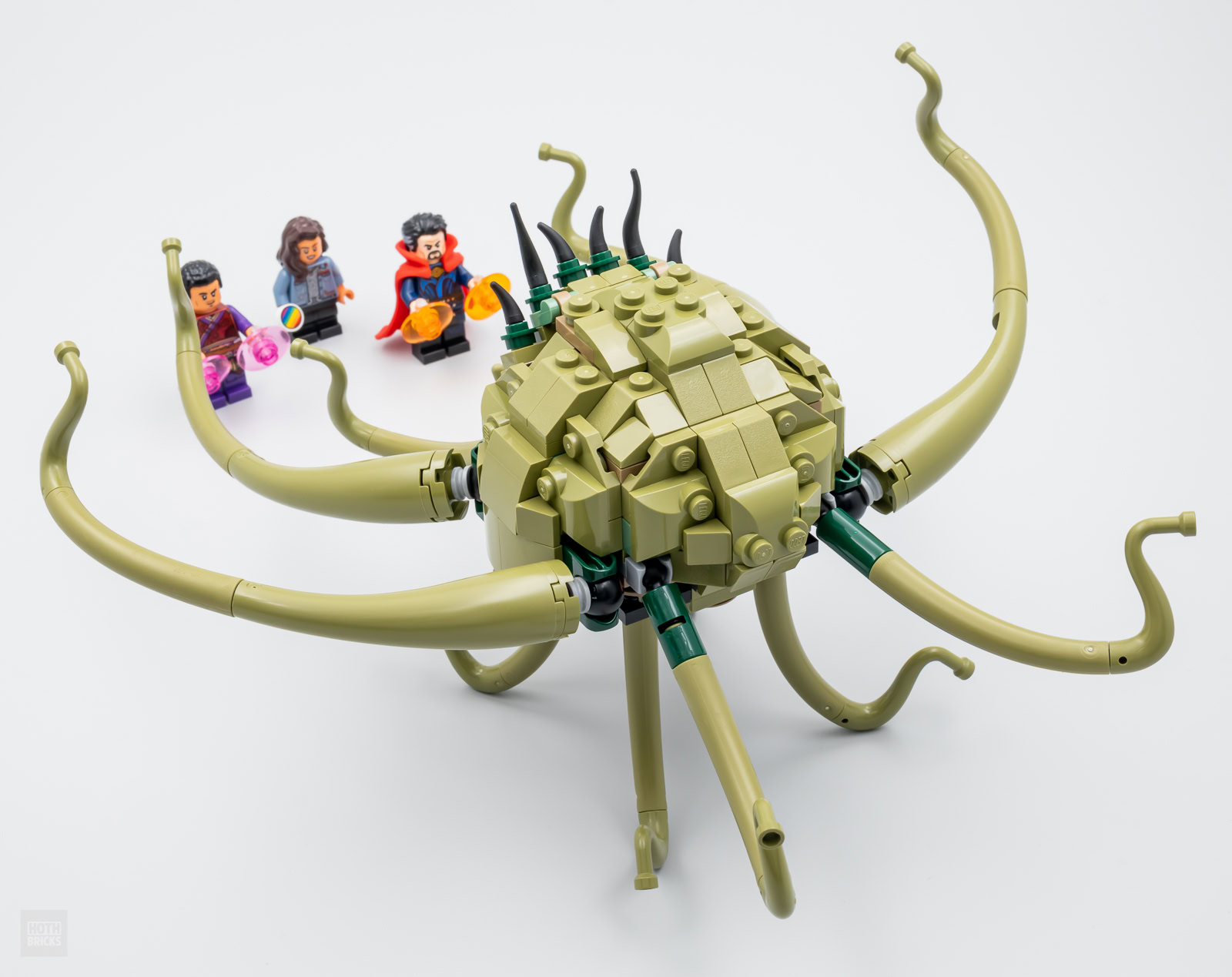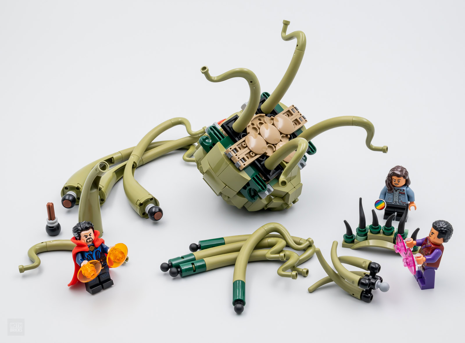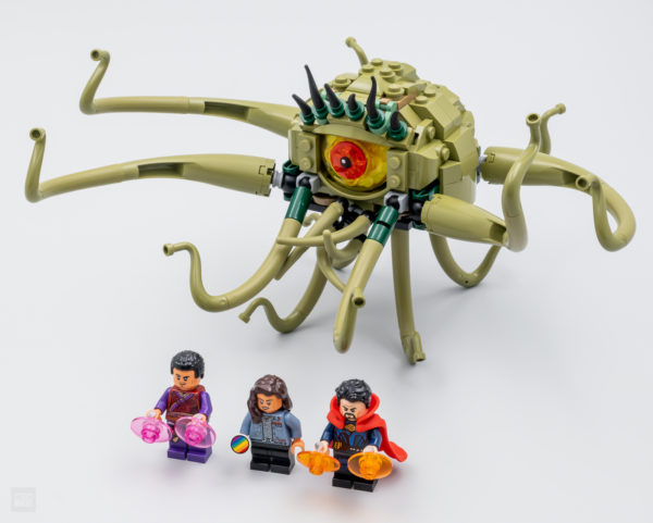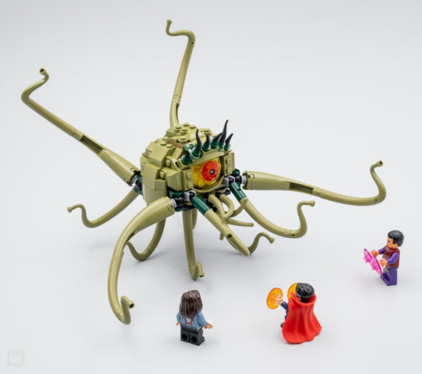On le sait depuis la mise en ligne du premier trailer du film, ce set entend reproduire la scène au cours de laquelle Gargantos (la créature a l'apparence de Shuma-Gorath, mais une histoire de droits empêche Marvel d'utiliser cette appellation) envoie un bus sur Doctor Strange, Wong et America Chavez. Sauf que LEGO ne fournit pas le bus et se contente de nous livrer la créature et trois minifigs. C'est un peu chiche en l'état, surtout pour 30 €, mais on fera avec.