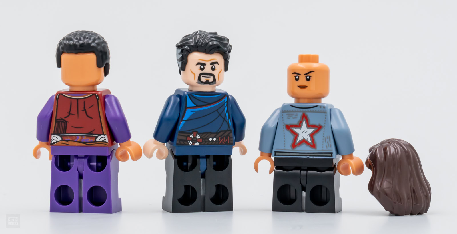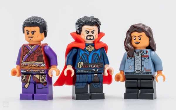 On s'en doutait, le contenu relativement minimaliste du set qui ne nous permet même pas d'obtenir un simple bout de trottoir avec une bouche à incendie ou un lampadaire est surtout un prétexte pour nous vendre trois jolies minifigs. Au programme ici : Doctor Strange, America Chavez et Wong.