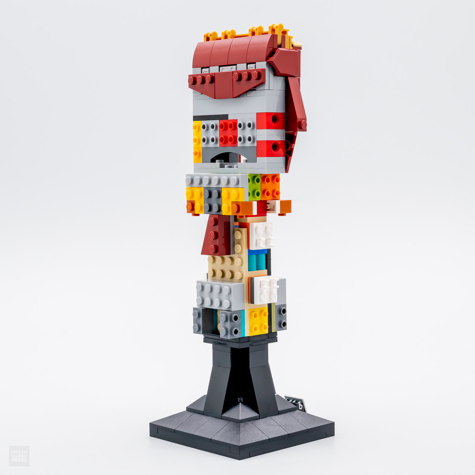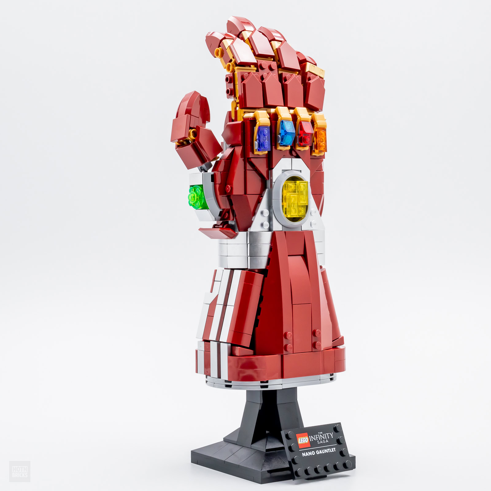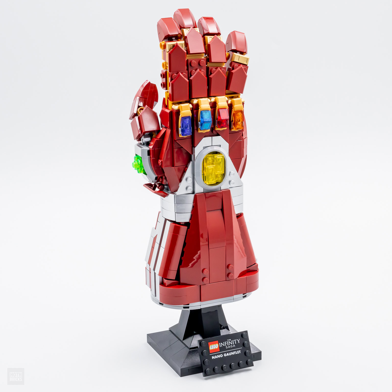 Comme pour le gant du set LEGO Marvel 76191 Infinity Gauntlet (590 pièces - 79.99 €), le socle de présentation est ici identique à celui des casques, têtes et autres masques commercialisés par LEGO dans les gammes Marvel, DC Comics ou encore Star Wars et on retrouve donc au pied de la construction une petite plaque de présentation qui nous confirme qu'il s'agit bien de l'autre célèbre gant de l'univers Marvel.