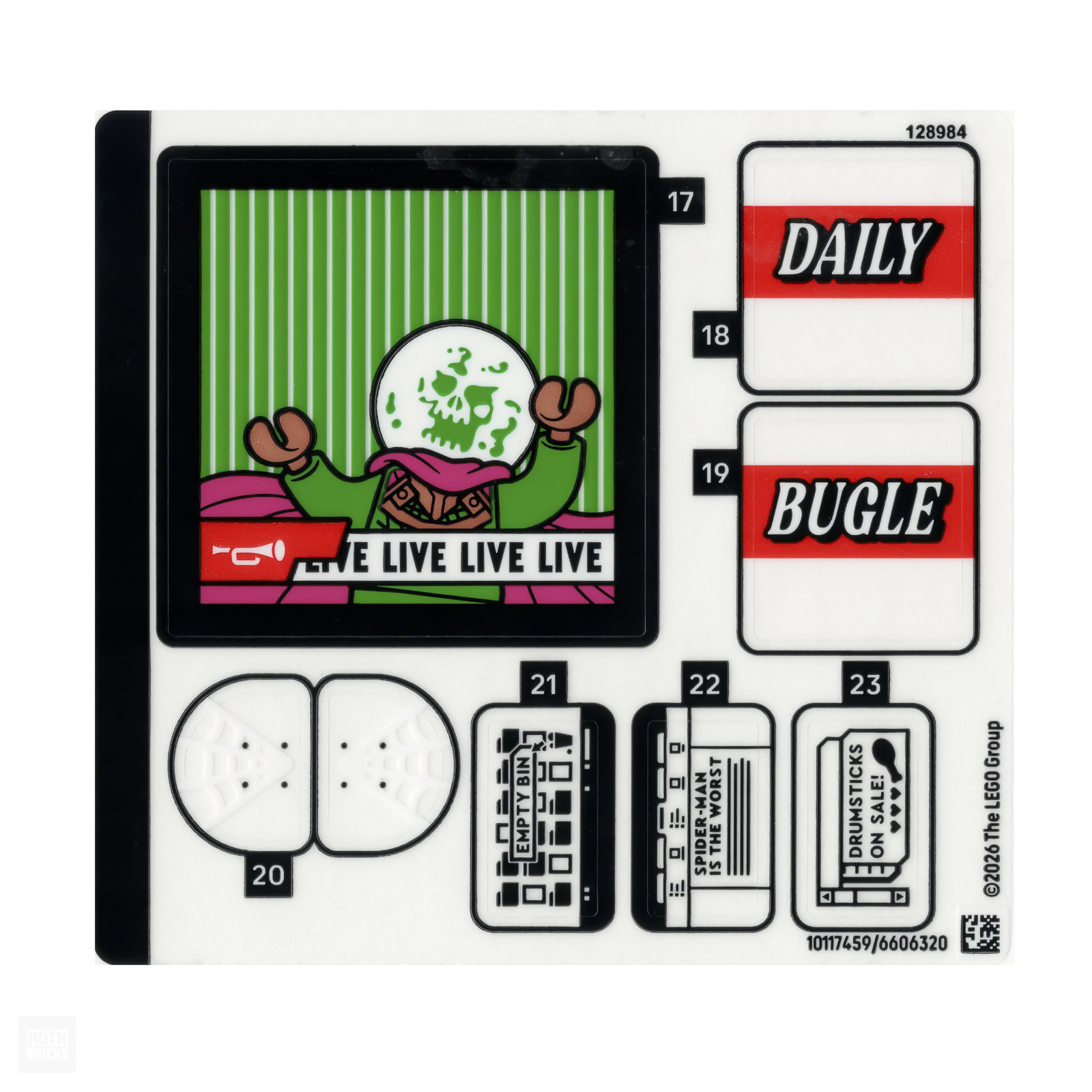 J. Jonah Jameson, Spider-Man et Ghost Spider réutilisent de leur côté des éléments déjà vus dans d'autres sets. Le directeur du Daily Bugle réutilise le torse de Creed Bratton (21336 The Office) et la tête déjà vue dans le set 76178 Daily Bugle, Spider-Man utilise le torse disponible depuis 2021 et Ghost Spider profite du torse disponible depuis 2019.