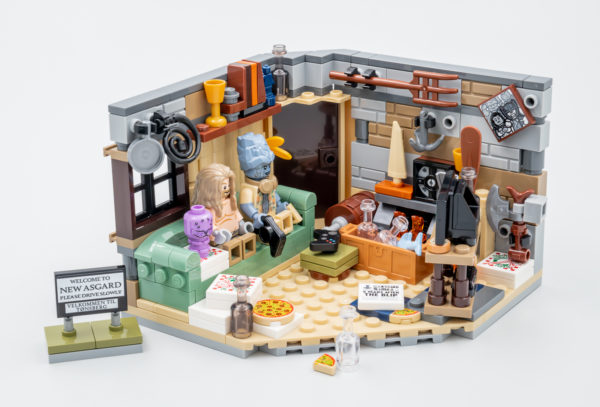 On s'intéresse aujourd'hui rapidement au contenu du set LEGO Marvel Infinity Saga 76200 Bro Thor’s New Asgard, une petite boite de 265 pièces vendue au prix public de 29.99 € qui reproduit vaguement l'intérieur de la maison occupée par Thor, Korg et Miek dans le village norvégien de Tønsberg devenu New Asgard.