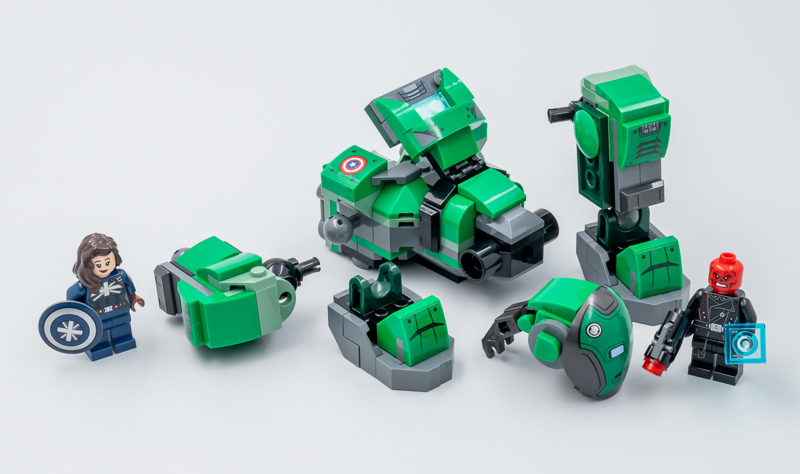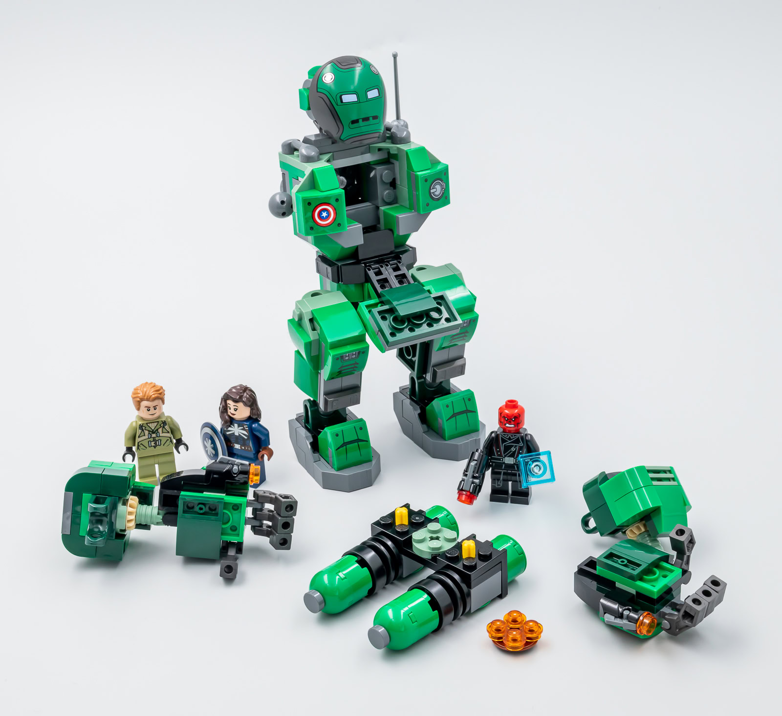 Ceux qui suivent le savent déjà, ce set est inspiré de la série animée Marvel What If...? dont la diffusion des 10 épisodes de la première saison débutera le 11 août prochain sur Disney +. Cette série met en scène des continuités alternatives au sein desquelles les évènements de l'univers Marvel se déroulent différemment de ceux de la timeline habituelle. On retrouve donc dans ce set une scène qui n'est pas dans le Marvel Cinematic Universe avec Peggy Carter qui devient Captain Carter après une injection du sérum de Super Soldier et Steve Rogers aux commandes d'un Hulkbuster vert.
