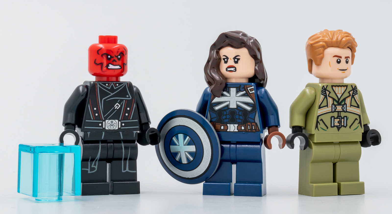 Red Skull n'est pas inédit, la tête et le torse étaient déjà dans le set 76166 Avengers Tower Battle (2020) et les deux éléments sont ici associés aux jambes du Général Hux, de Nick Fury et de quelques autres personnages de la gamme LEGO Harry Potter. Le Tesseract prend enfin la forme d'un élément plus crédible que la pièce habituelle même si la tête de figurine Minecraft ici transparente peut paraître un peu disproportionnée.