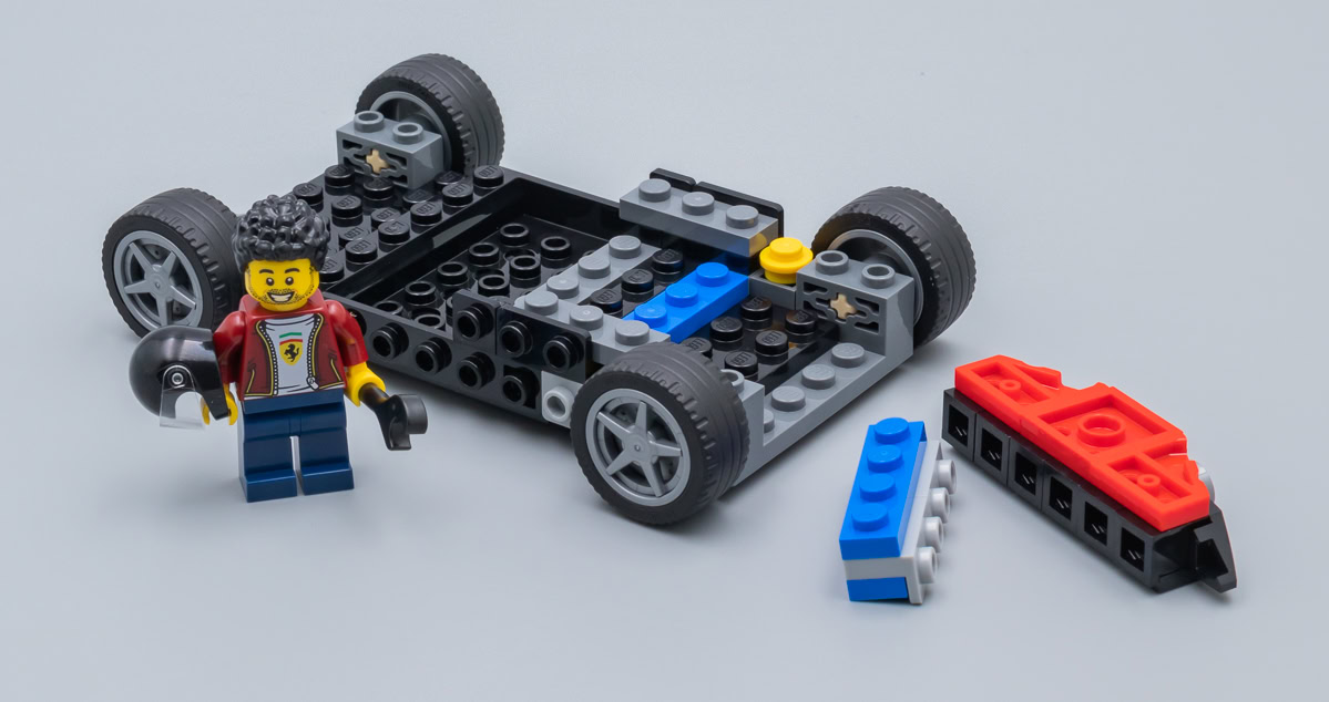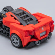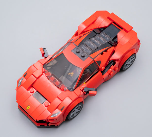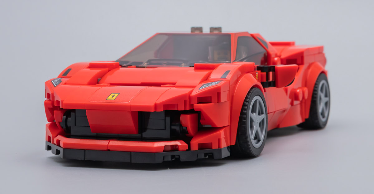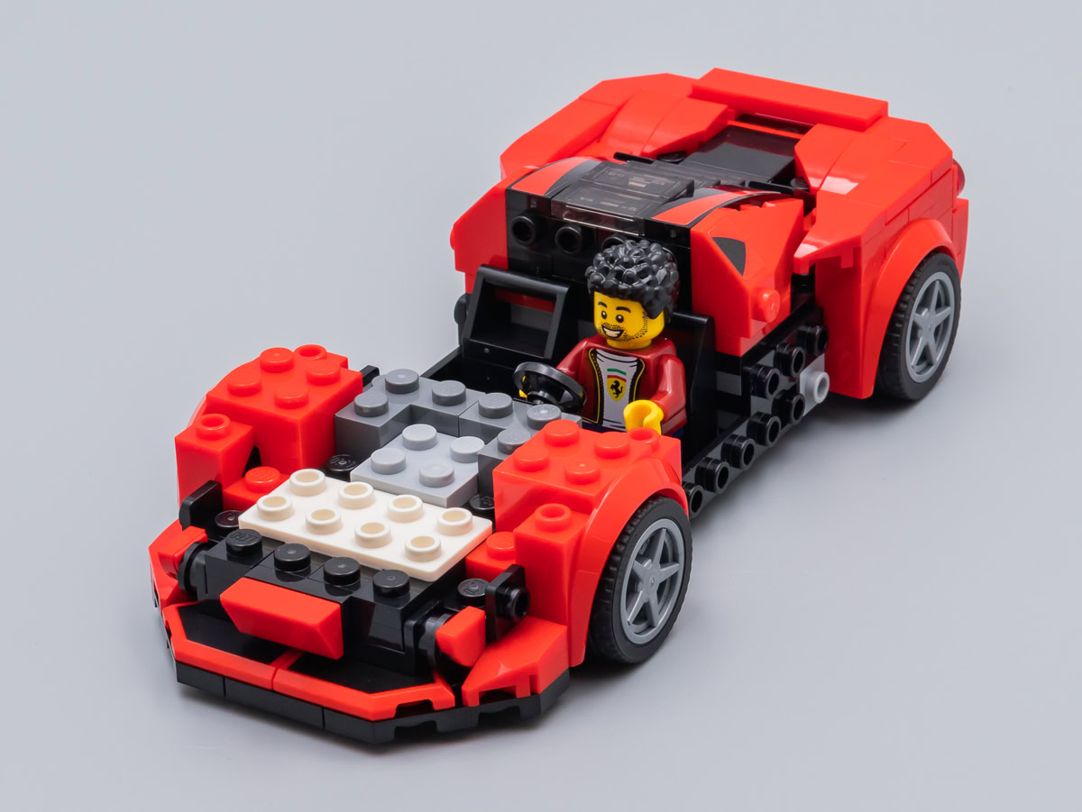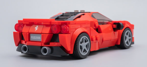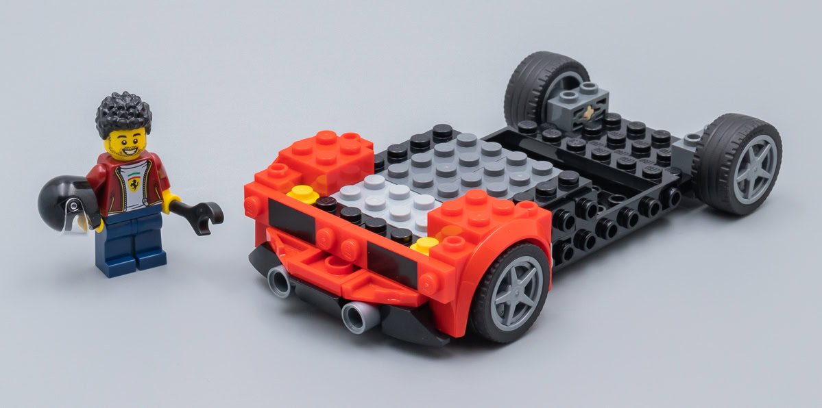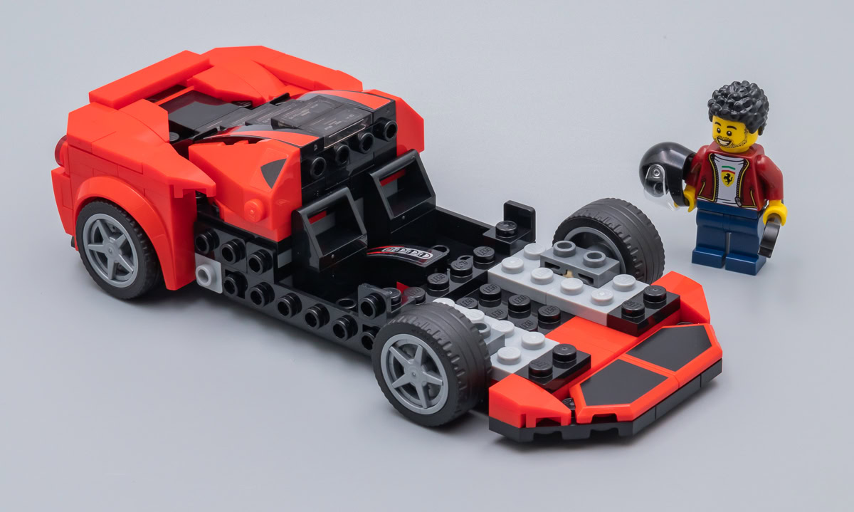 Toutes considérations relatives à la fidélité de la version LEGO au modèle de référence mises à part, il n'en reste pas moins que cette Ferrari a le look d'une Ferrari. La largeur du nouveau châssis lui apporte ce qui pouvait faire défaut jusqu'ici aux versions des nombreux sets commercialisés dans la gamme LEGO Speed Champions : une largeur acceptable qui permet aussi d'écraser un peu le modèle pour lui donner de l'allure.