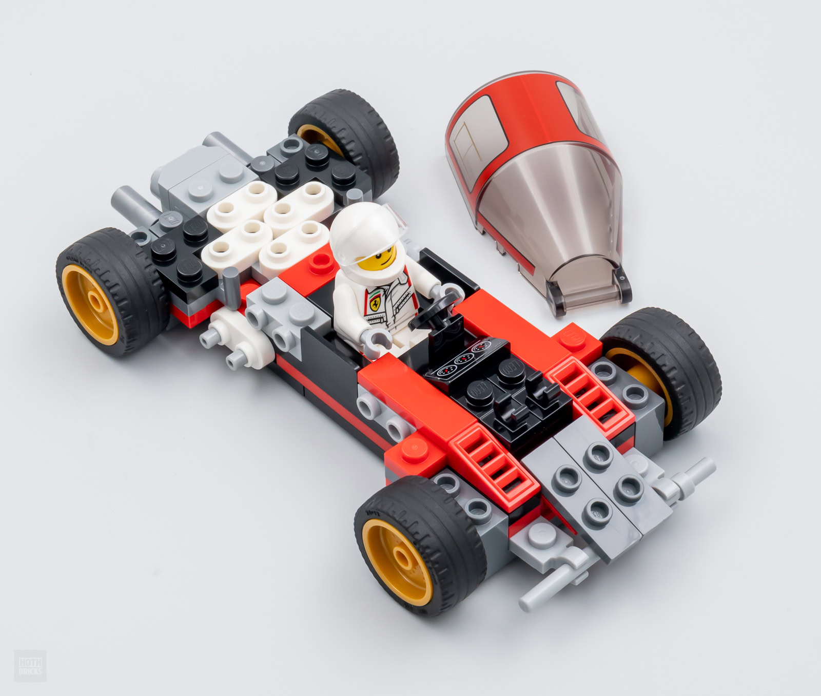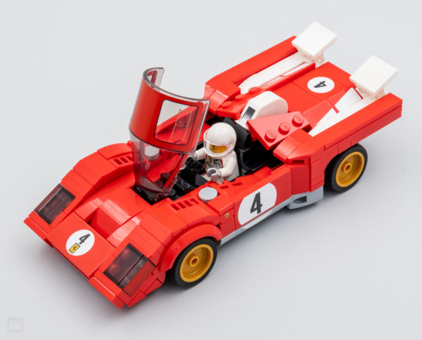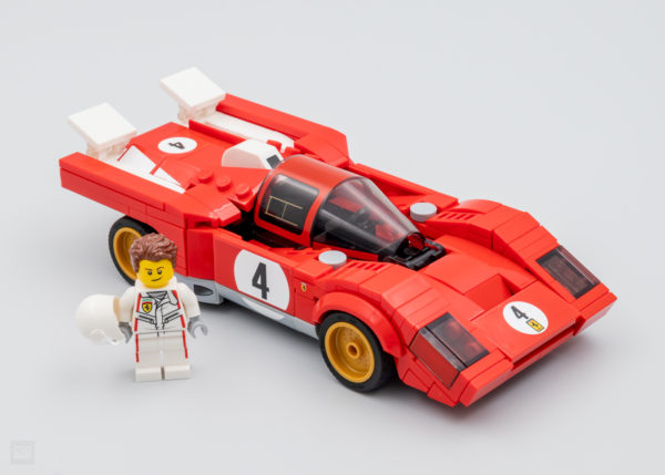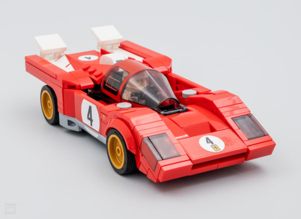 On assemble ici le véhicule portant le numéro 4 qui remportait en 1970 les 9 heures de Kyalami en Afrique du Sud avec au volant le belge Jacky Ickx et l'italien Ignazio Giunti. LEGO s'en tire plutôt bien avec une reproduction assez fidèle du véhicule de référence et le designer, bien aidé par l'utilisation de la verrière habituellement utilisée sur de nombreux vaisseaux de l'univers Star Wars, n'a pas eu trop à lutter avec des courbes de cette Ferrari. On peut en conclure que le sujet bien traité, que le résultat est convaincant et que la chose se fera remarquer sur une étagère.