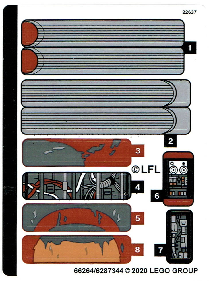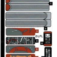Il y a une dizaine de stickers à coller sur le modèle et, faut de mieux, je les trouve très à-propos notamment au niveau des moteurs. Je préfère également la solution mise en œuvre ici sur la tranche du véhicule à celle à base de tubes flexibles utilisée sur l'engin du set 75173 Luker's Landspeeder et sur celui du set 75052 Mos Eisley Cantina (2014).