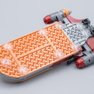 Encore une fois, le Landspeeder ne flotte pas vraiment au dessus du sol. Les quelques pièces transparentes placées sous l'engin permettent de le faire glisser sur tous les types de surfaces, mais lorsqu'il s'agira d'exposer l'ensemble il faudra trouver une solution permettant de donner un peu de hauteur au véhicule. Dommage que LEGO ne nous fournisse pas un support central transparent, deux pièces suffiraient.