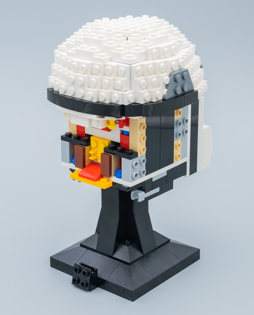 Comme pour le vaisseau du set 75252 UCS Imperial Star Destroyer, je trouve que ces entrailles colorées dénaturent un peu l'expérience de montage de ce produit pour collectionneur, mais c'est très personnel. Ce qui l'est moins, c'est que plusieurs de ces pièces colorées restent visibles sous certains angles sur le modèle final, par petites touches certes, mais elles cassent un peu l'uniformité de la texture extérieure du casque.