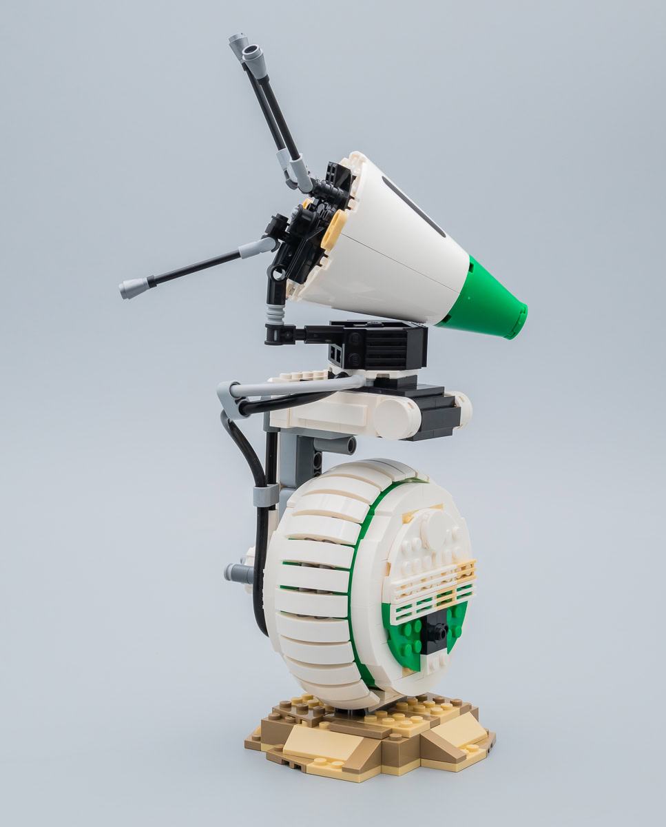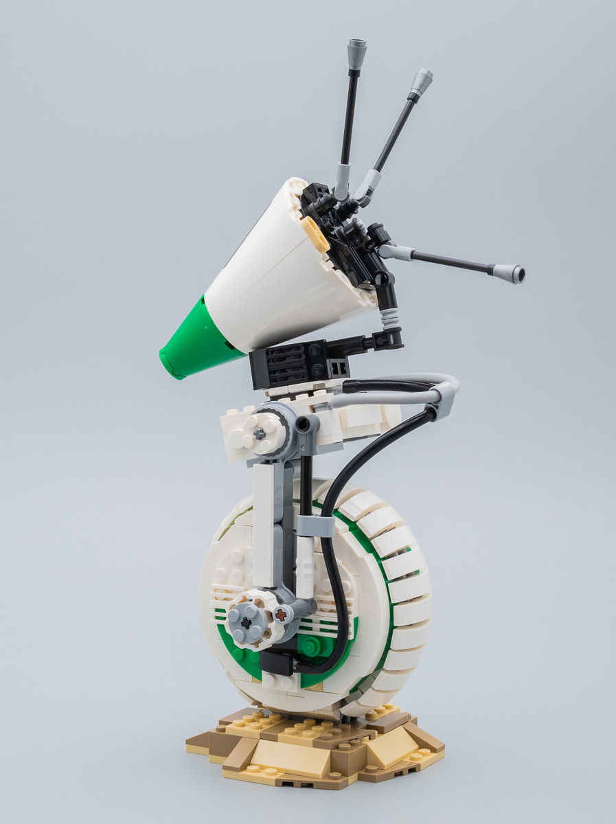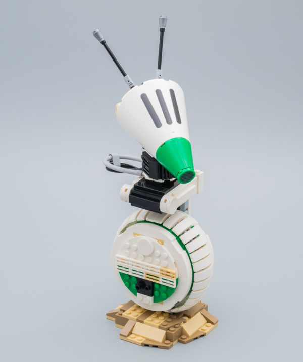 Bref, malgré le compromis esthétique discutable au niveau de la tête, je sais déjà que ce produit d'exposition trouvera forcément son public parmi ceux qui aiment exposer les différentes reproductions de droïdes issues de l'univers Star Wars. D-O prendra place sur une étagère aux côtés de R2-D2 et BB-8 mais il faudra composer avec les différentes échelles imaginées par LEGO : la version de BB-8 du set 75187 BB-8 mesure 25 cm de haut pour un droïde qui est en réalité haut de plus d'une soixantaine de centimètres. La version LEGO de D-O dépassera donc légèrement son copain avec ses 27 cm de haut pour une taille réelle à l'écran de seulement 30 centimètres. Tant pis pour la cohérence du duo.