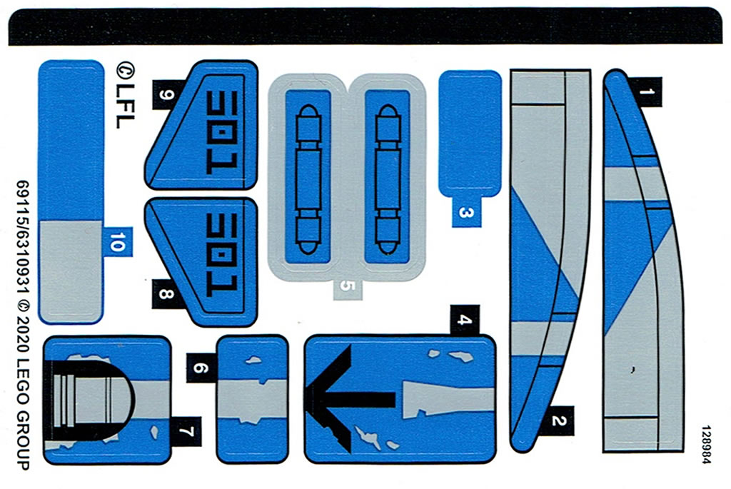 LEGO livre quatre minifigs dans cette boite, trois Clone Troopers identiques et un Jet Trooper équipé de l'accessoire dorsal déjà disponible dans d'autres couleurs depuis belle lurette mais fourni par la première fois en bleu. Les quatre minifigs sont toutes équipées de la nouvelle tête avec sa teinte "Nougat" qui colle un peu plus au physique de Temuera Morrisson, les tampographies sont impeccables, la répartition de la dotation en figurines me semble judicieuse et les Army Builders devraient donc y trouver leur compte.