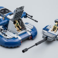 Il n'en reste pas moins que cette nouvelle interprétation de l'engin est plutôt bien conçue et qu'elle laisse suffisamment d'espace interne pour y installer les deux Battle Droids fournis. La tourelle pivote sur 180°, le canon principal et les armes latérales peuvent être orientés comme ça vous amuse et le designer à même intégré deux Spring Shooters sous l'engin. C'est jouable et cet AAT est suffisamment solide pour être manipulé par les plus jeunes.
