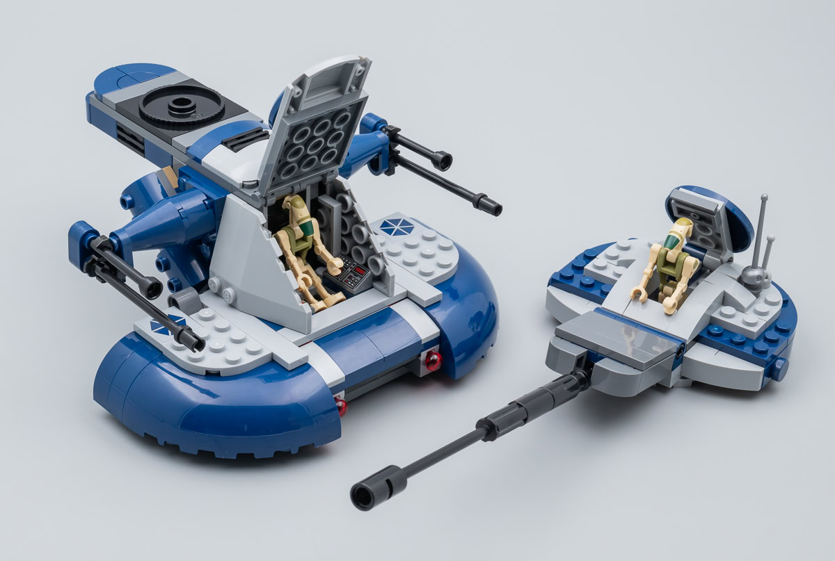 On ne va pas se mentir, l'AAT en version 2020 est passé à l'essoreuse et ceux qui ont dans leur collection la version du set 8018 Armoured Assault Tank (AAT) commercialisé en 2009 auront sans doute un peu de mal avec ce nouveau modèle beaucoup plus compact qui emprunte une partie de son design à la version de l'Episode I vue en 2015 dans le set 75080 AAT.