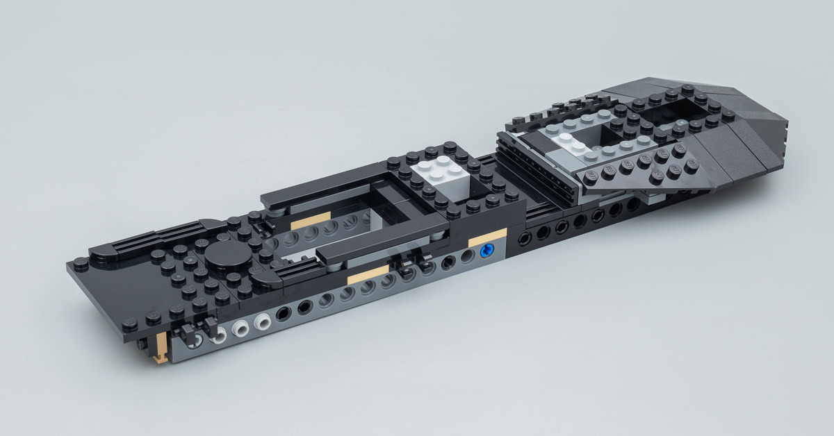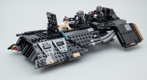 L'apparence extérieure du vaisseau est à mon avis globalement très satisfaisante compte tenu de l'échelle du modèle et le côté Chibi de la chose ne se fait pas trop sentir tant qu'on tient les trois minifigs fournies à l'écart. Lorsqu'il s'agit d'essayer de combiner le vaisseau avec les personnages, il faut se contenter de deux étroits postes de tir et d'un compartiment un peu plus spacieux pour "enfermer Rey après sa capture"... Et c'est donc là que le côté Microfighter hors de prix s'exprime pleinement.